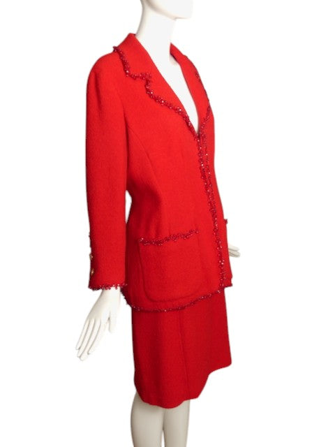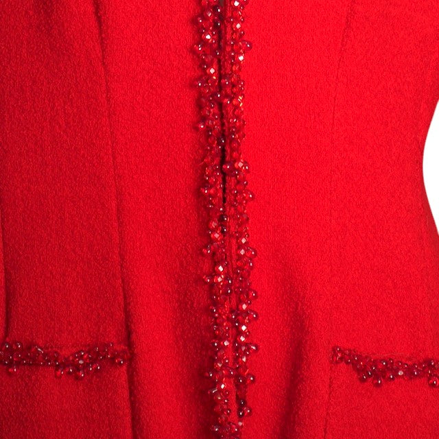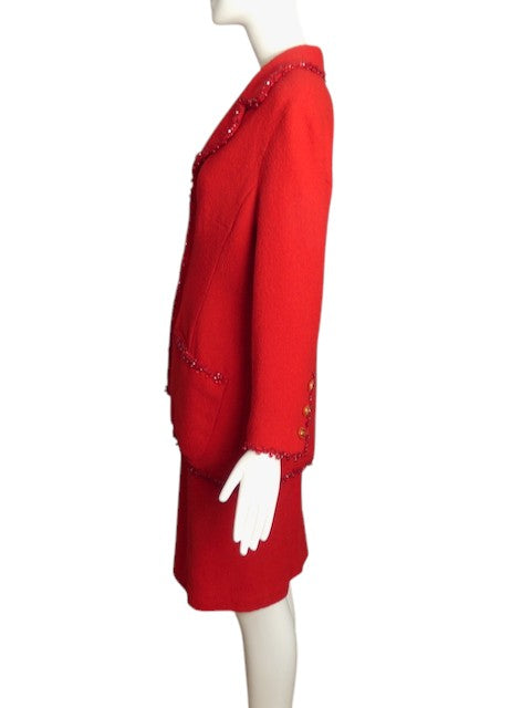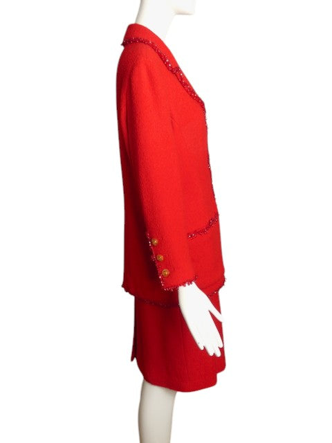 CHANEL BOUTIQUE- 2003 Red Beaded Cocktail Skirt Suit, Size 10