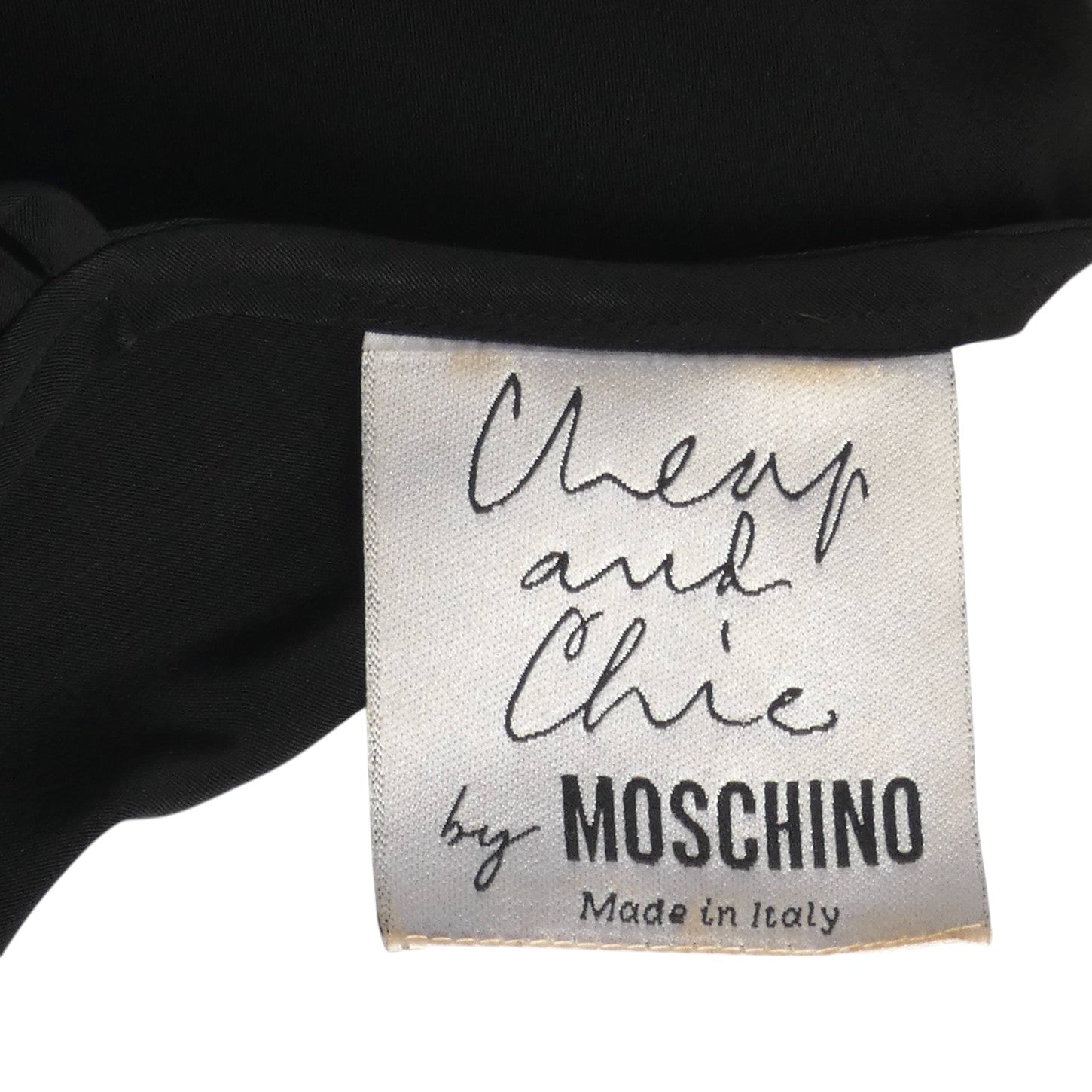 Description: Take a risk with this boldly embroidered black crepe shell featuring the iconic "Cheap and Chic" phrase in white. This statement piece has slits at the side seams and down the center back, with a daring button closure at the back neckline. Get ready for adventure and challenge with this inspiring garment!