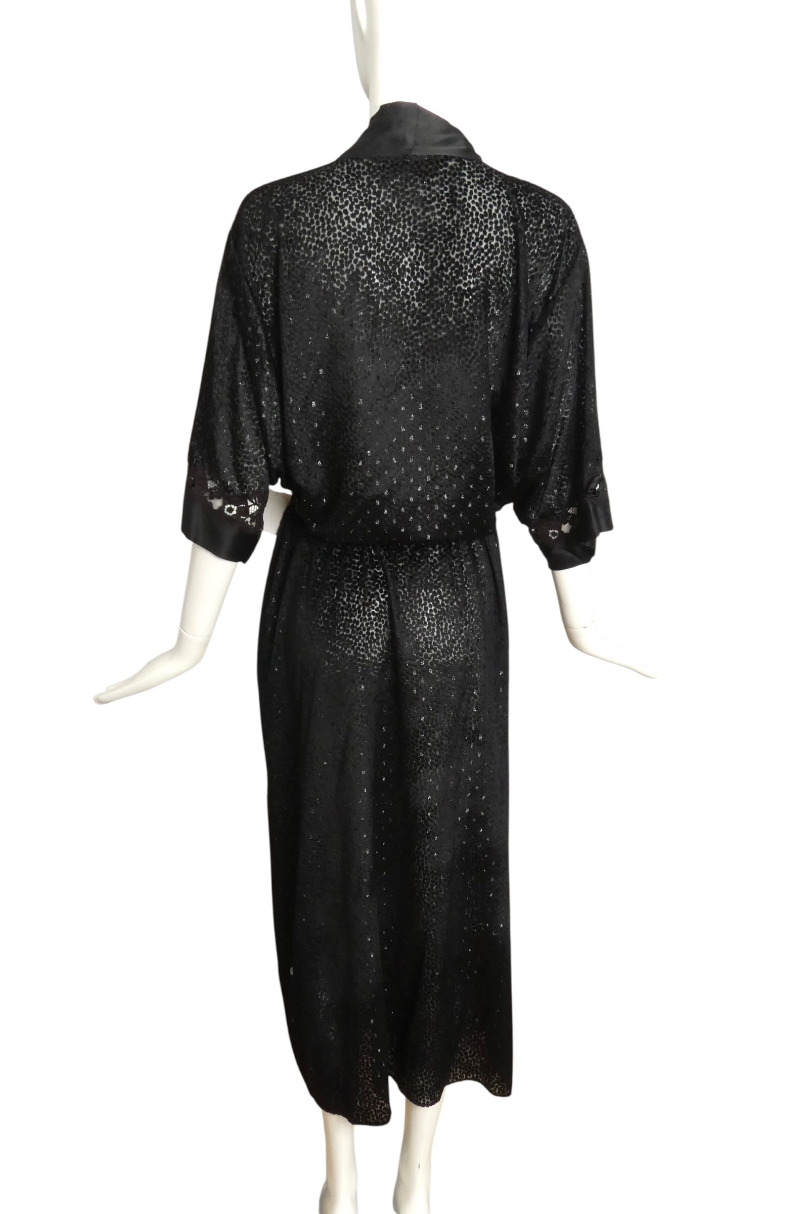CHRISTIAN DIOR- 1980s Black Silk & Velvet Robe, Size Small