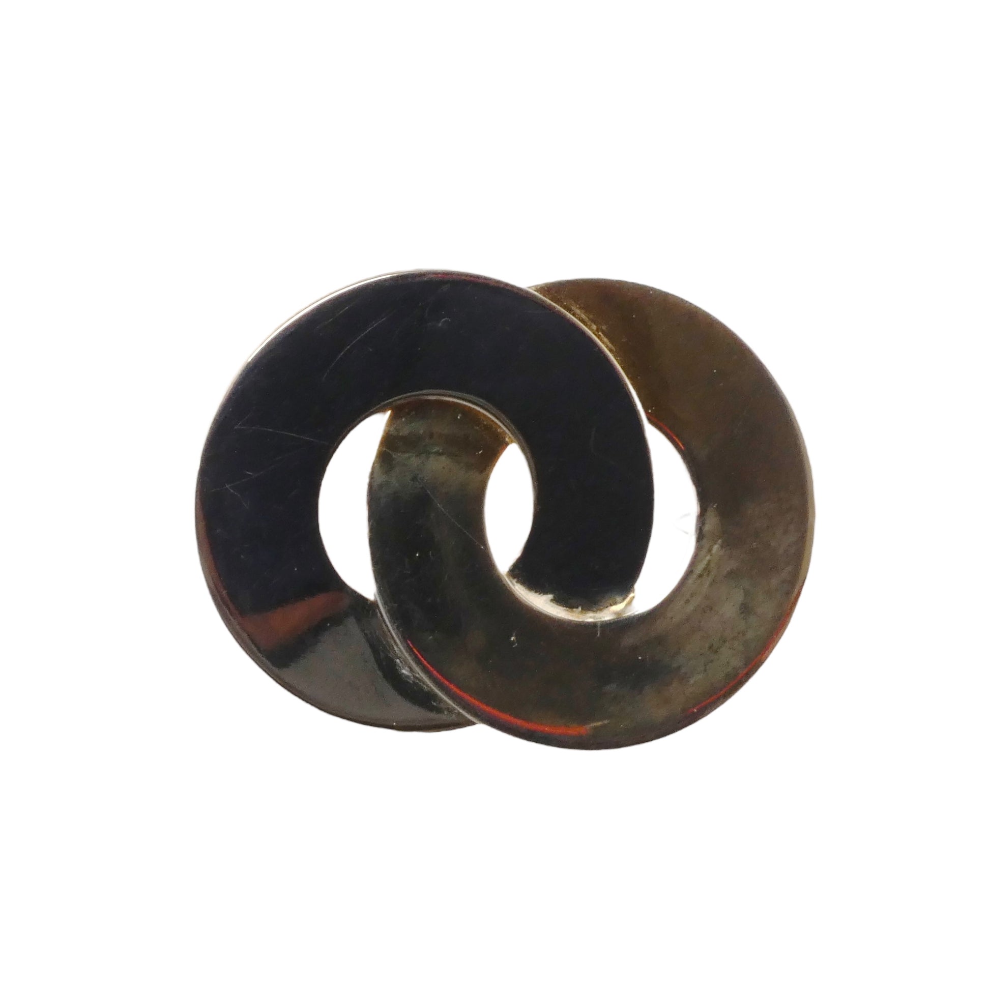 Description: Dated 1969, this elegant brooch features two interlocking rings in contrasting gold and silver tones. Crafted with precision, it offers a timeless design secured by a reliable locking clasp on the back. A distinctive accessory that reflects Christian Dior’s sophisticated aesthetic of the era.