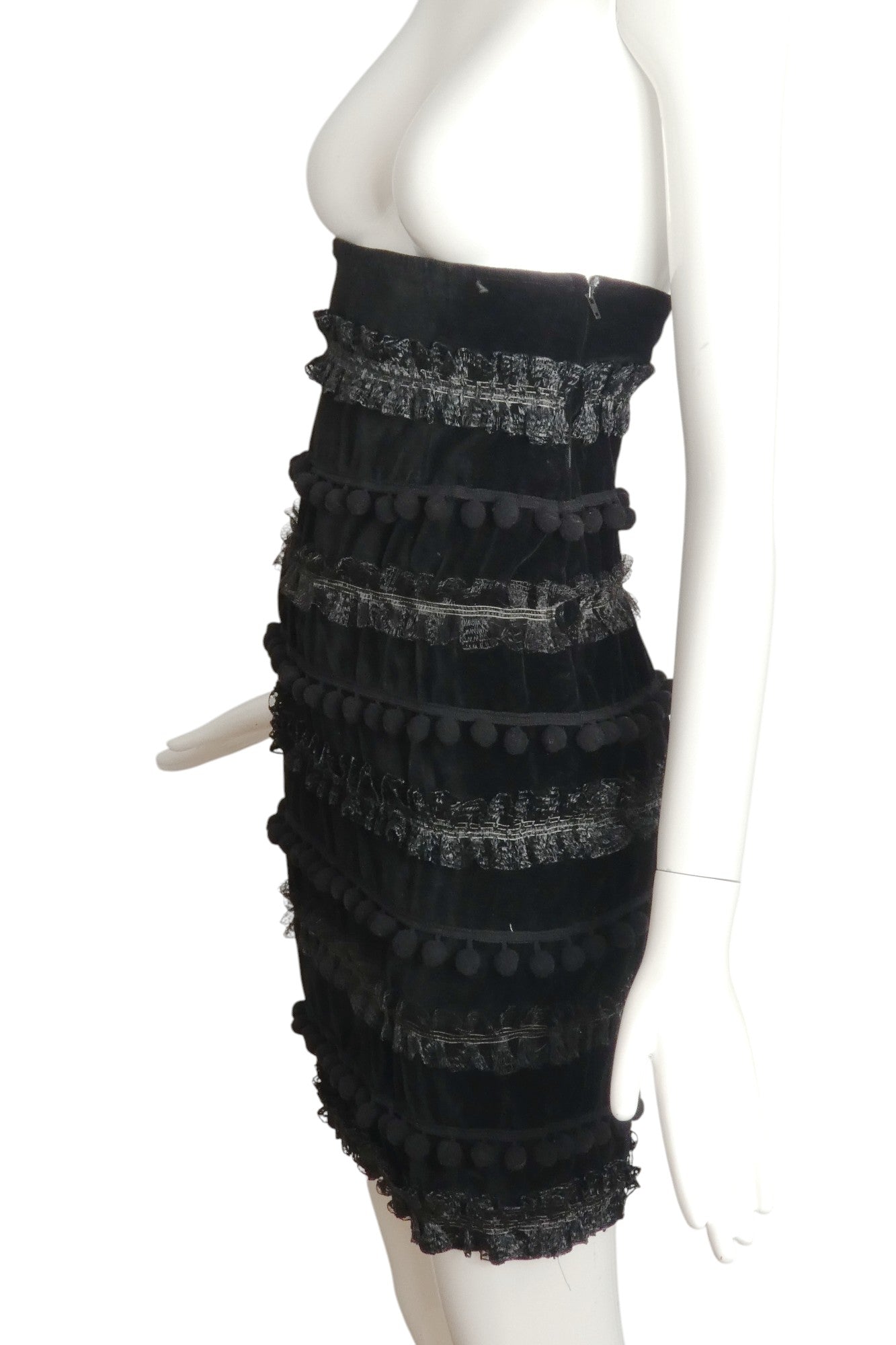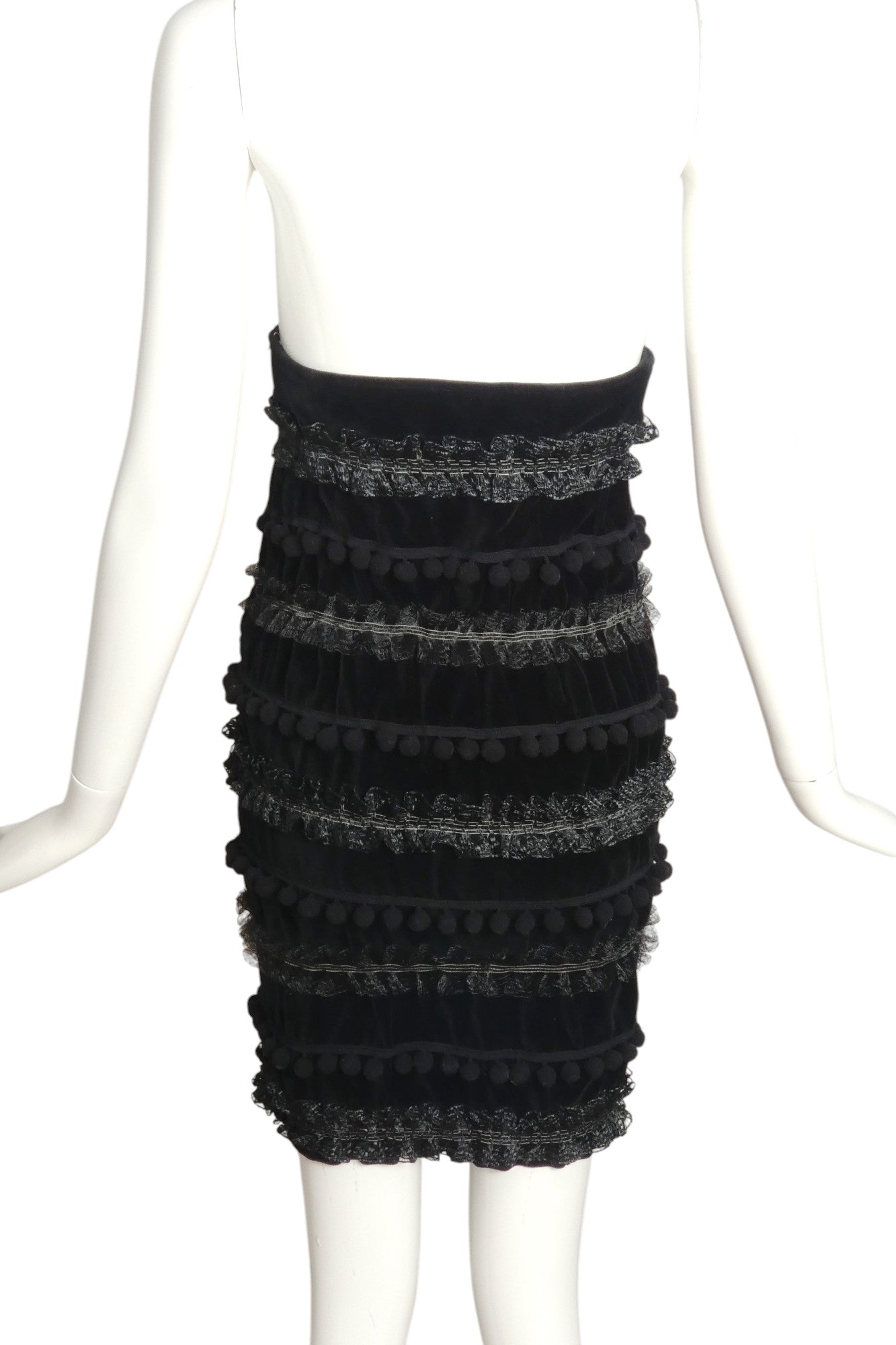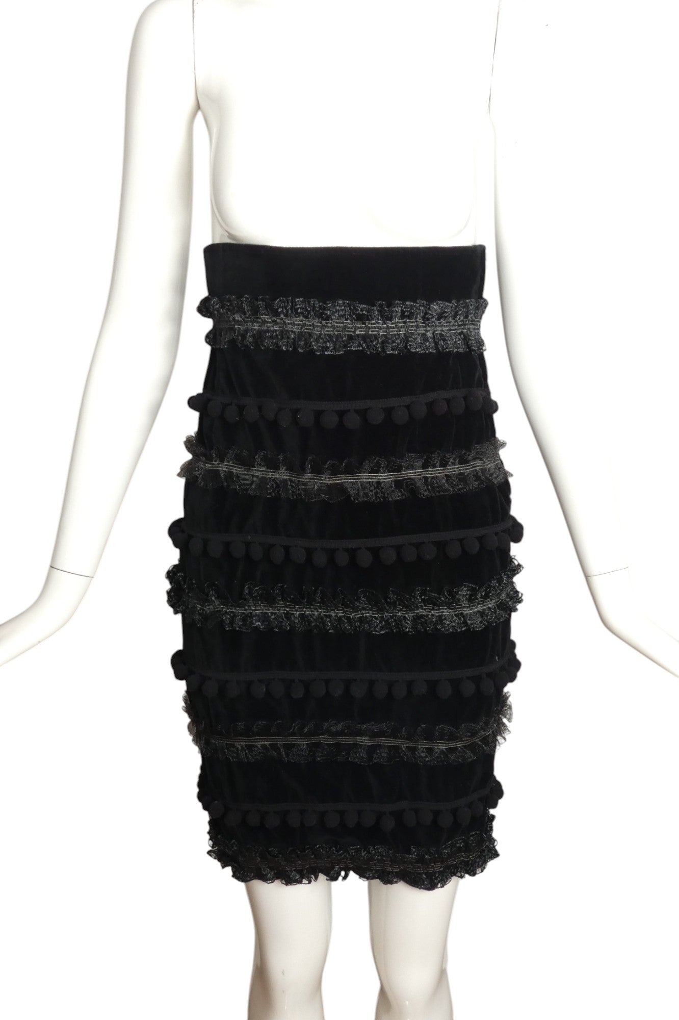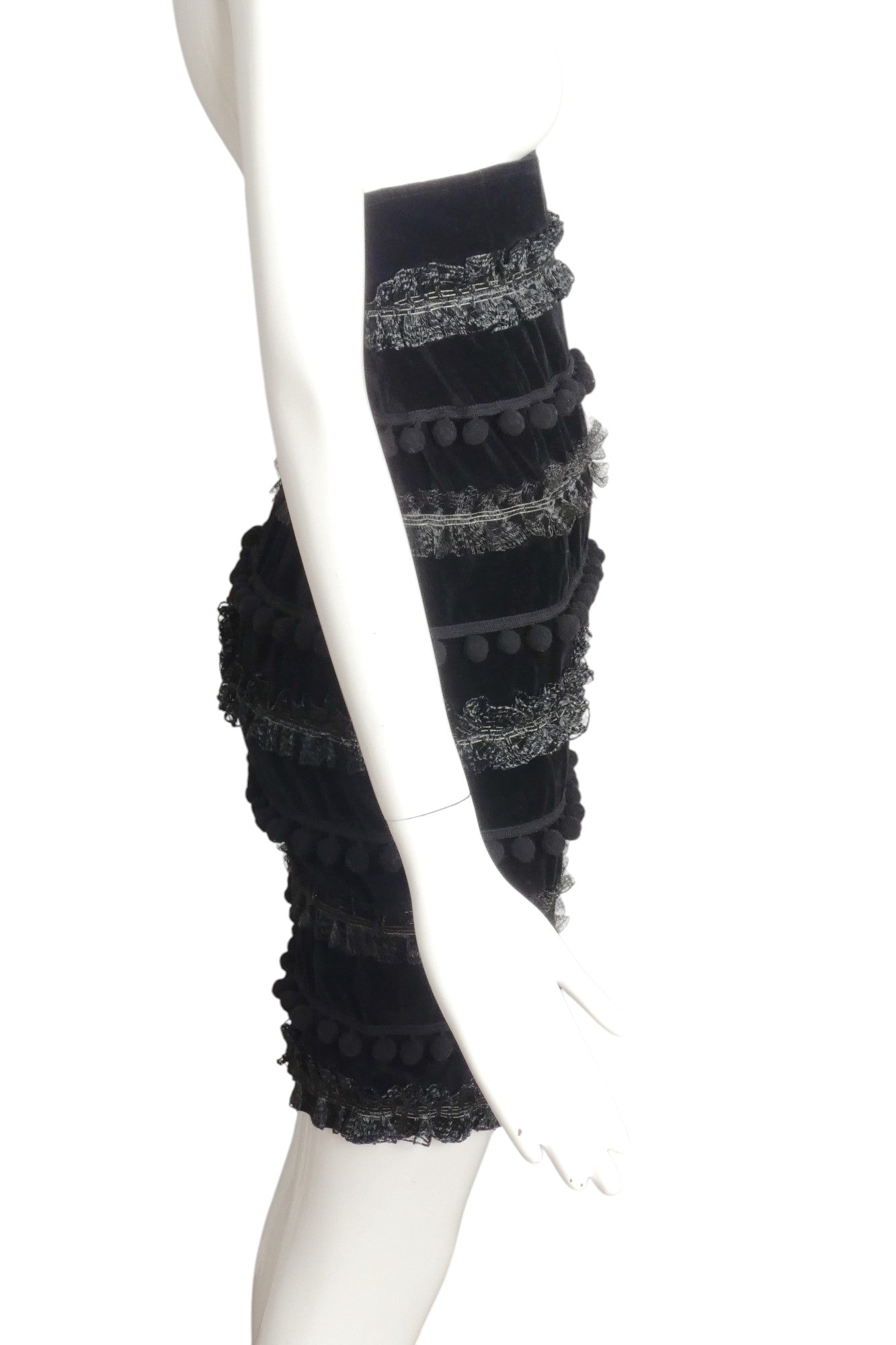 CHRISTIAN LACROIX- 1980s Black Velvet Pom Pom Skirt, Size 2
