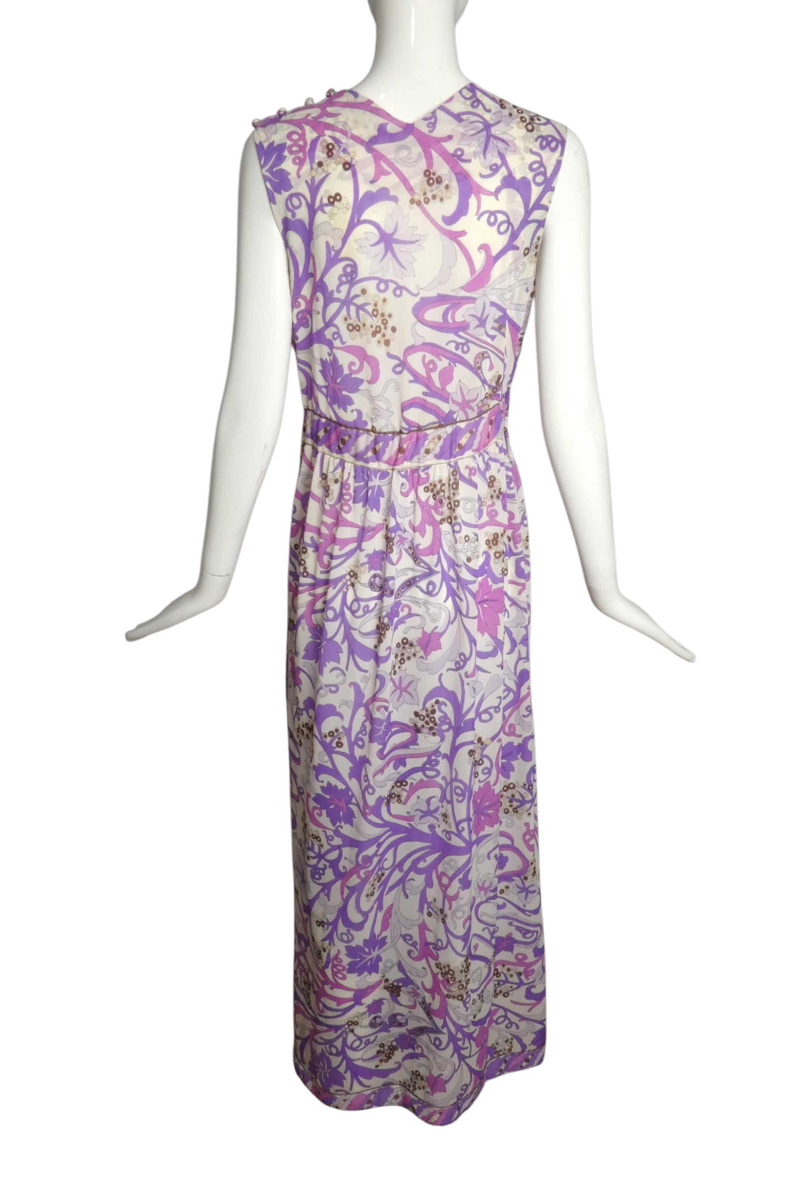 EMILIO PUCCI FOR FORMFIT ROGERS- 1970s Purple Printed Nylon Nightgown, Size 6