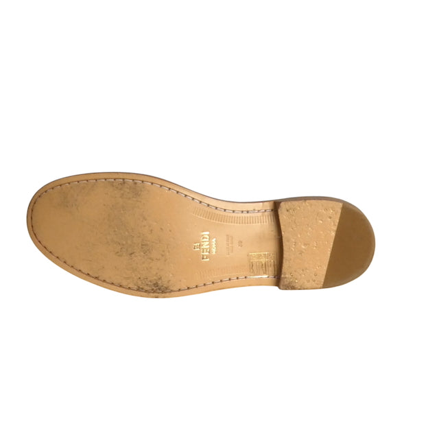 FENDI- 2022 O'Lock Metallic Silver Loafers, Size 39