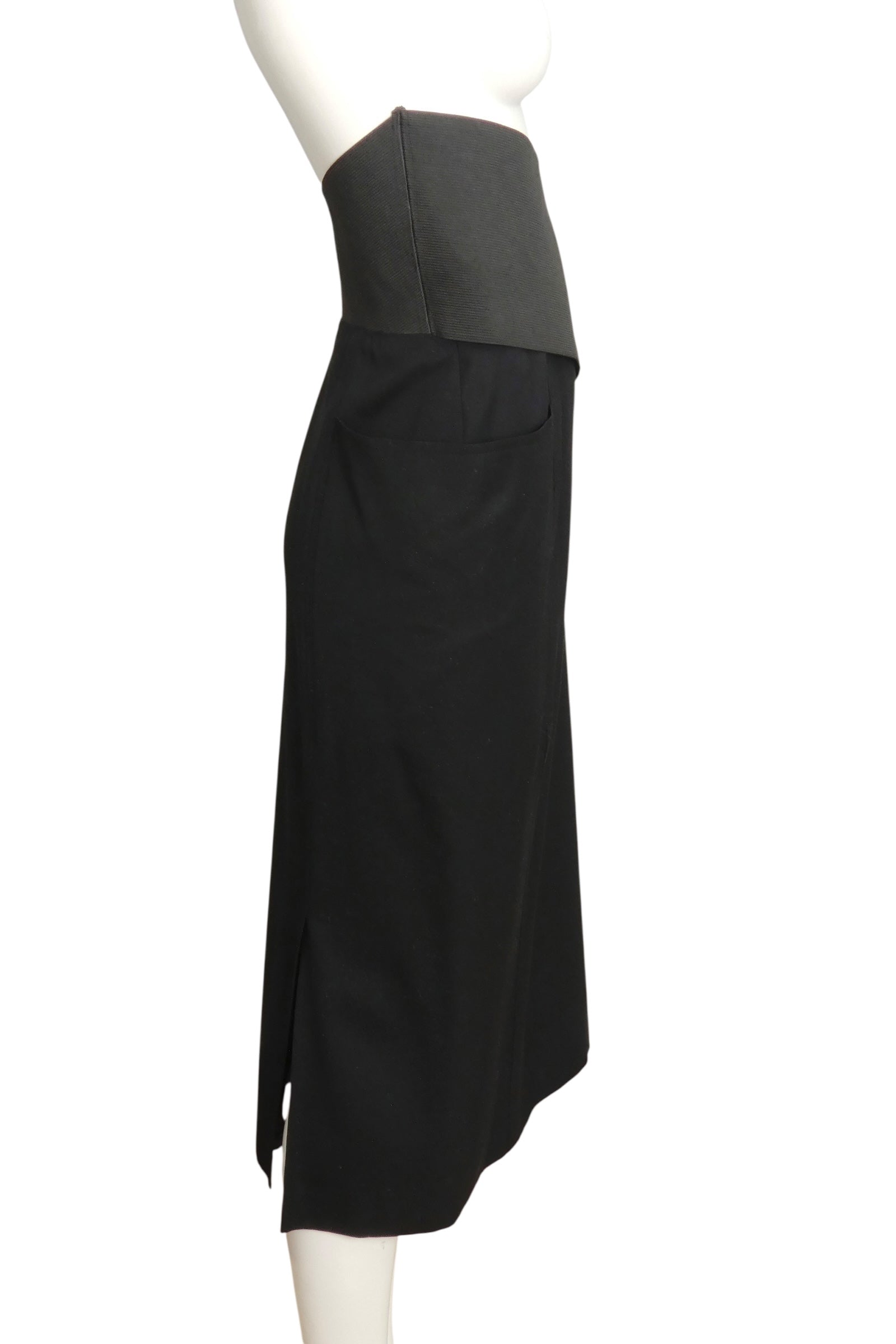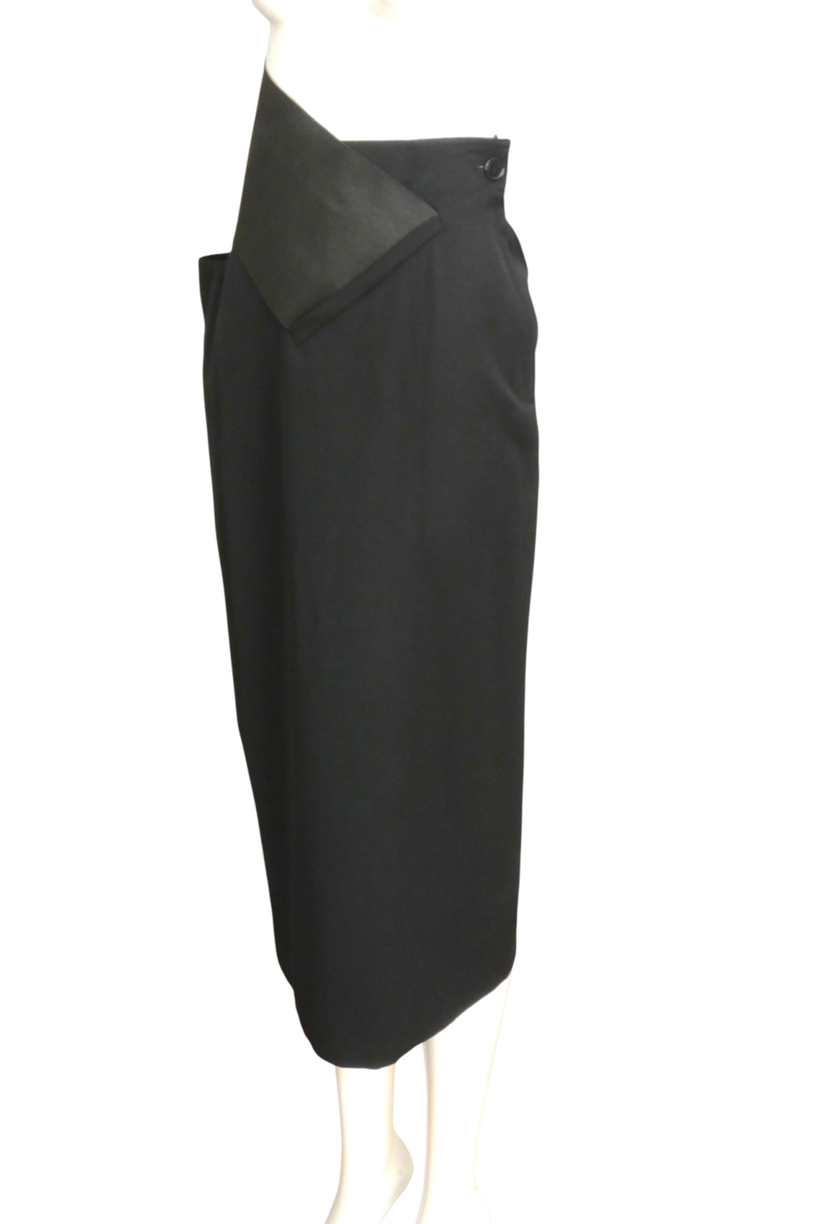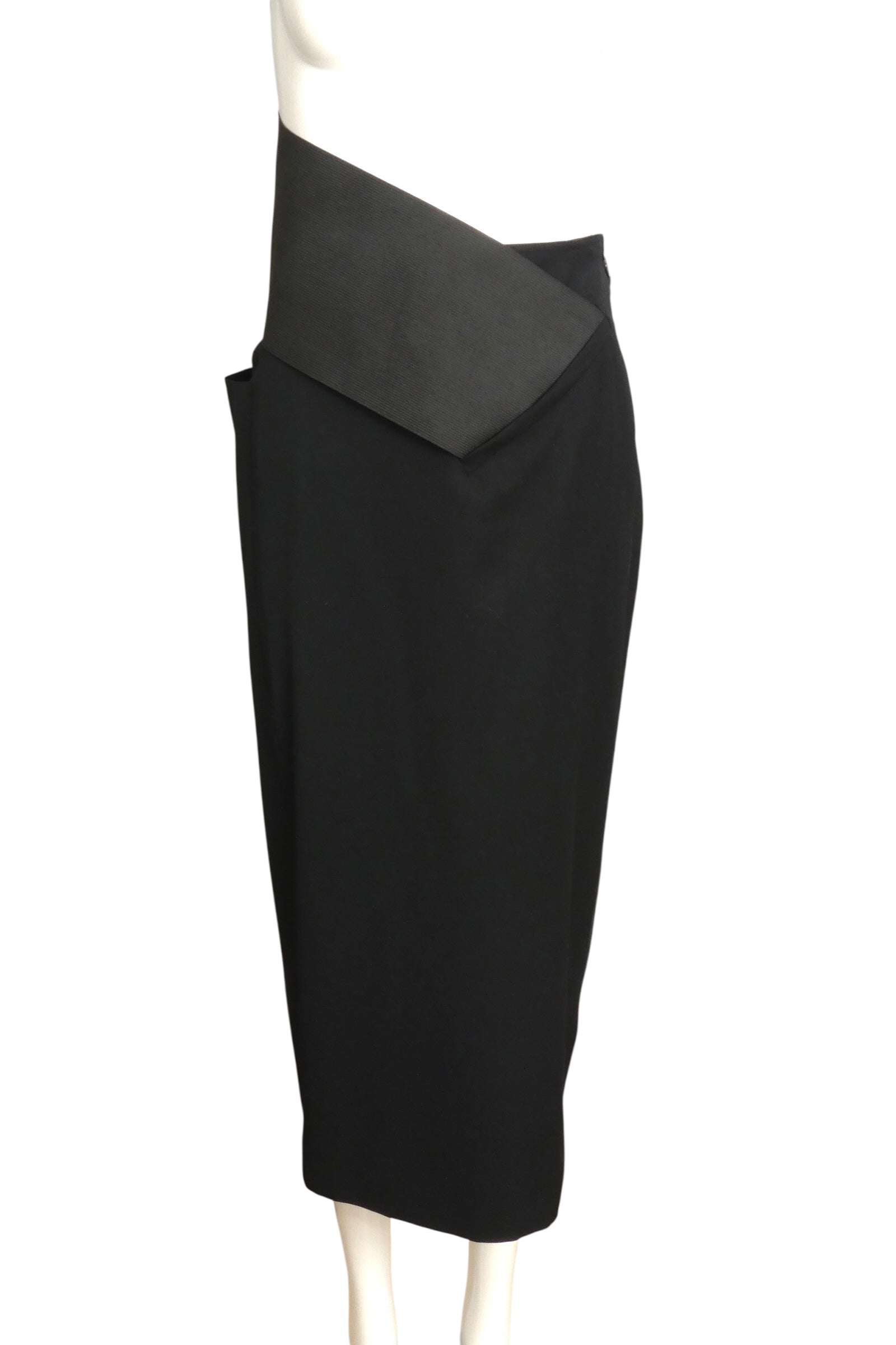 GIANFRANCO FERRE- 1980s Black Wool Asymmetrical Waist Skirt, Size 12