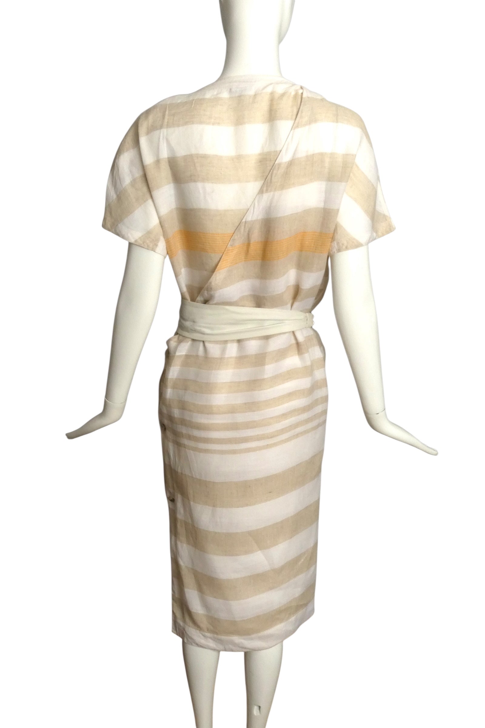 GIANNI VERSACE- 1984 Tan & Ivory Stripe Linen Dress, Size 8
