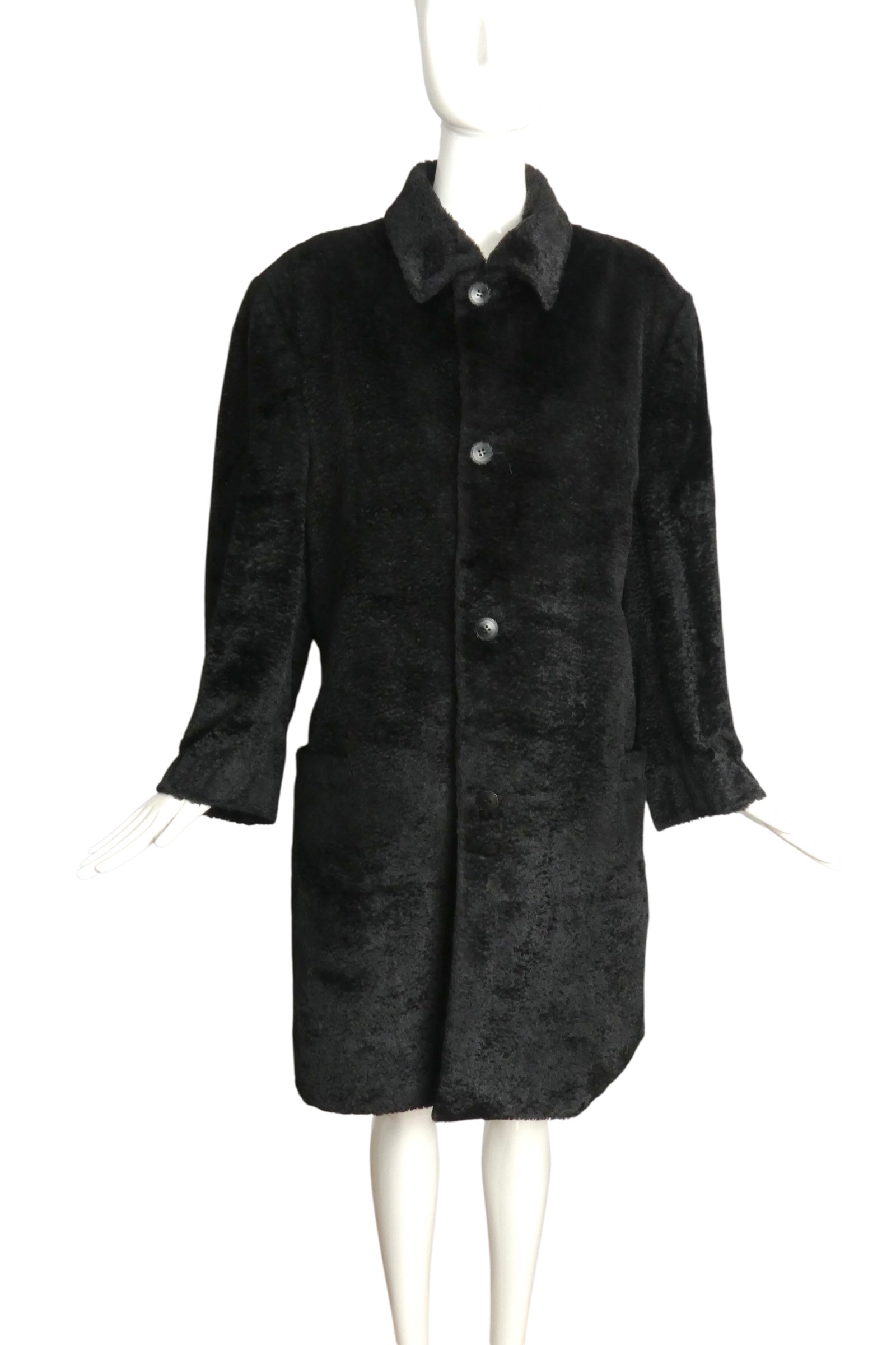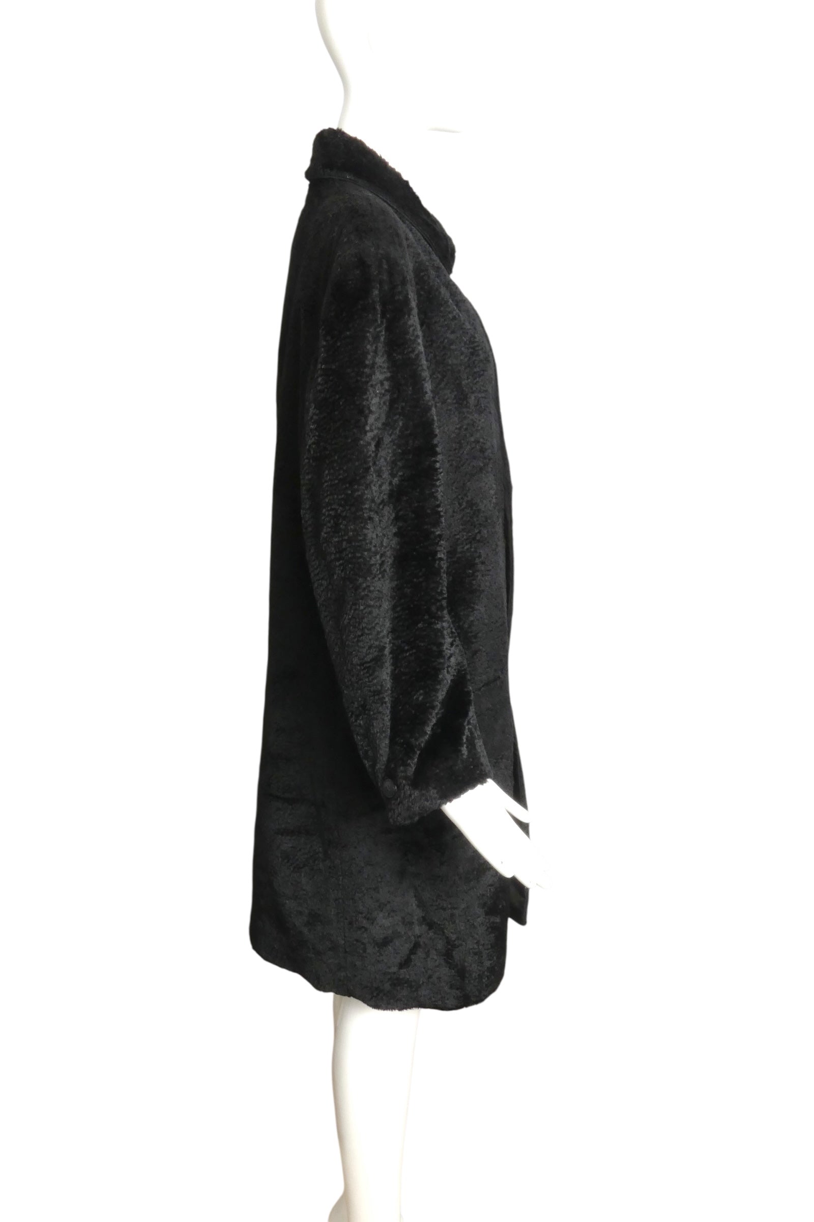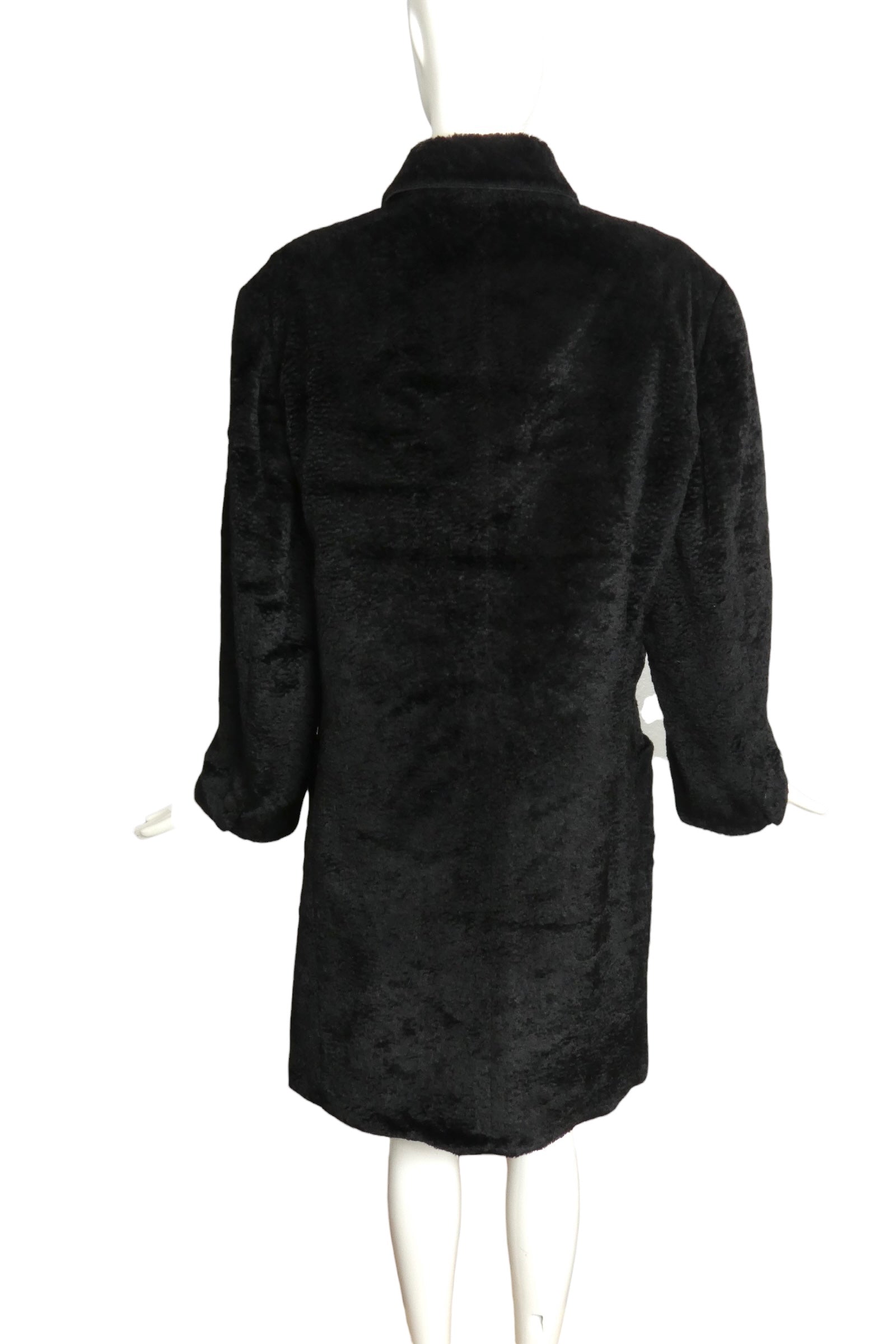 GIANNI VERSACE- 1990s Black Faux Fur Coat, Size 10