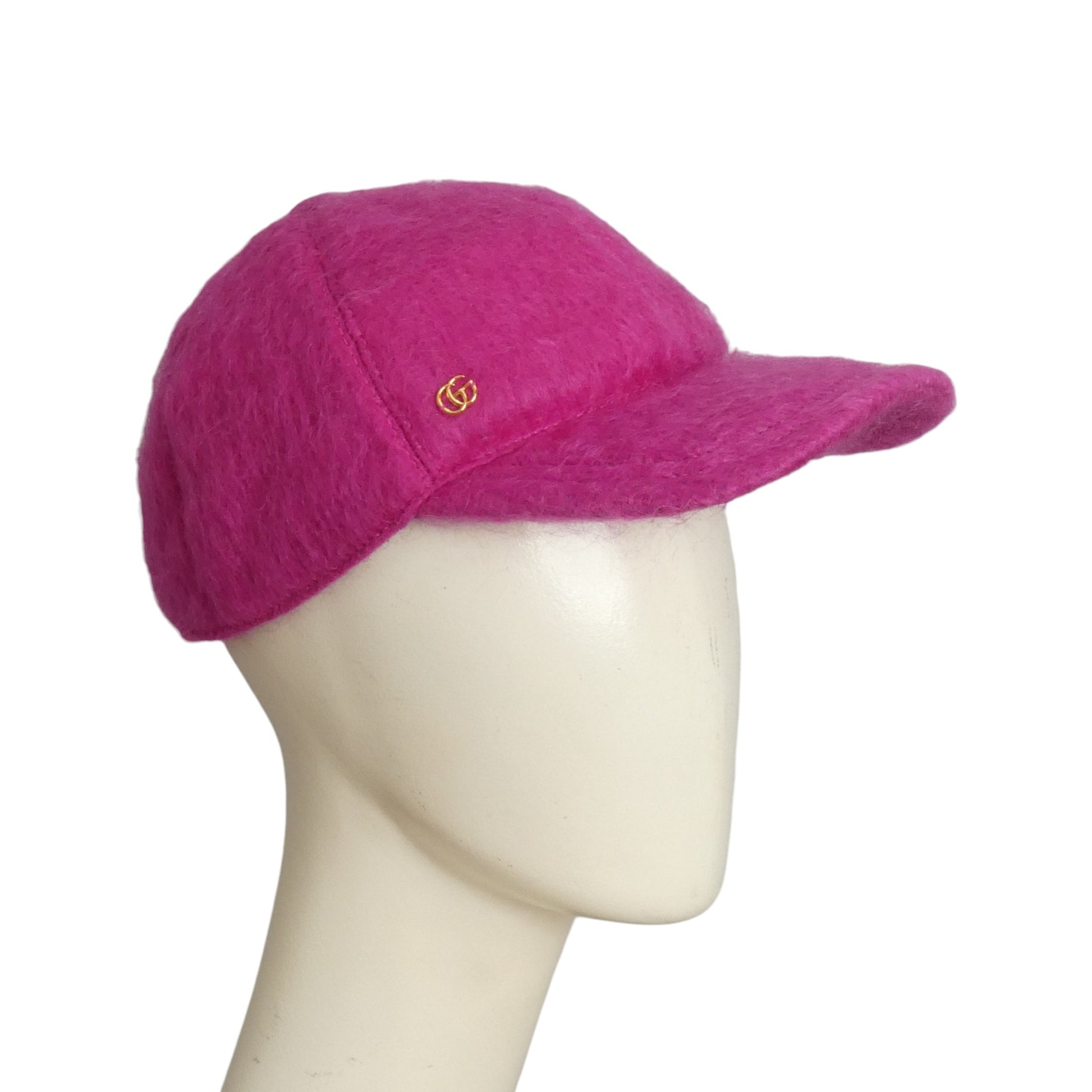 Description: Add a splash of fun to your look with the Gucci Raspberry Mohair Baseball Cap! This vibrant pink cap flaunts the classic gold interlocking GG logo front and center, turning heads wherever you go. With a comfy elastic strap at the back, it fits just right every time. Brand new with tags, it’s ready to brighten your wardrobe or surprise a stylish friend. A playful pop of luxury that’s impossible to resist!