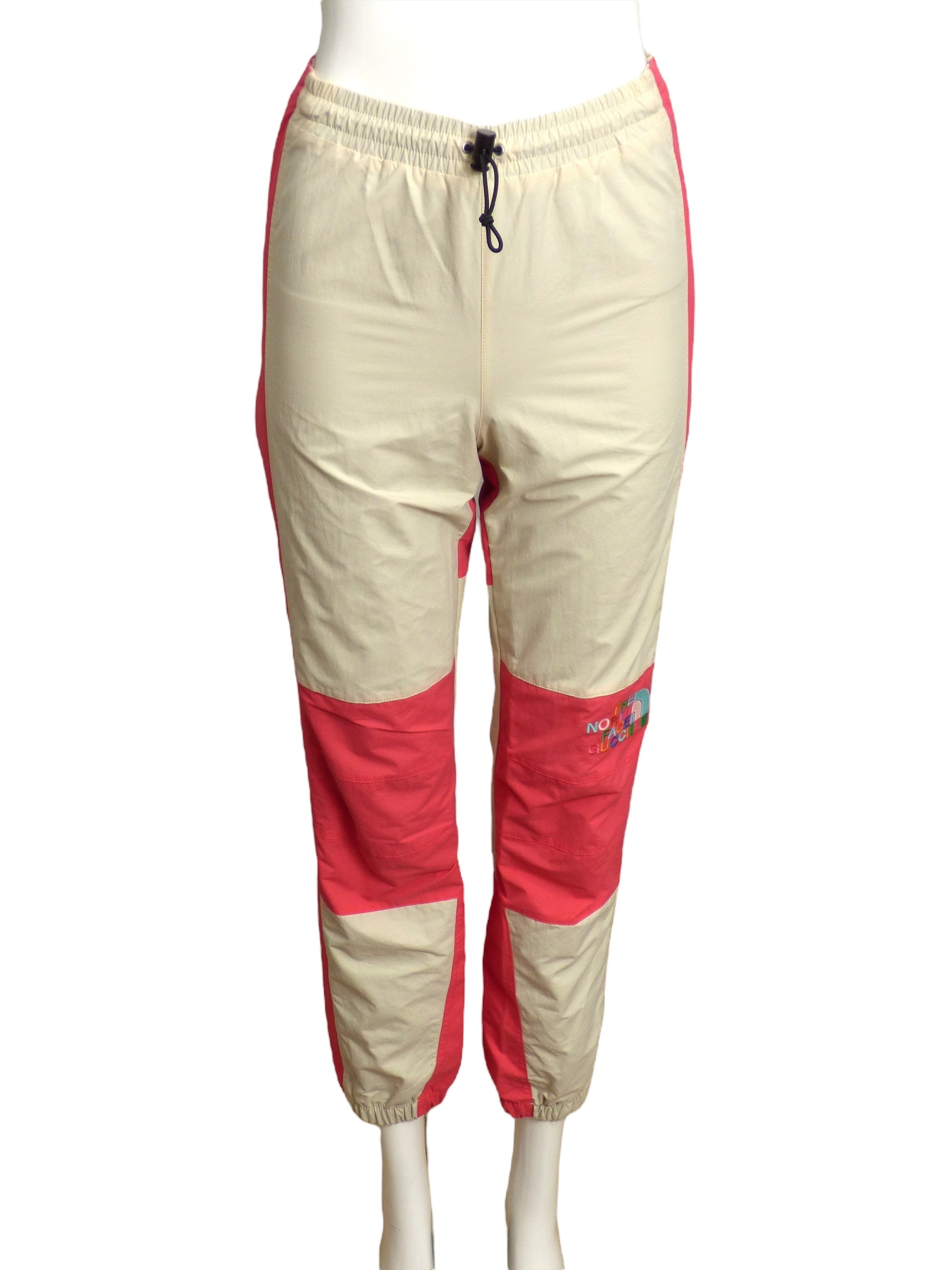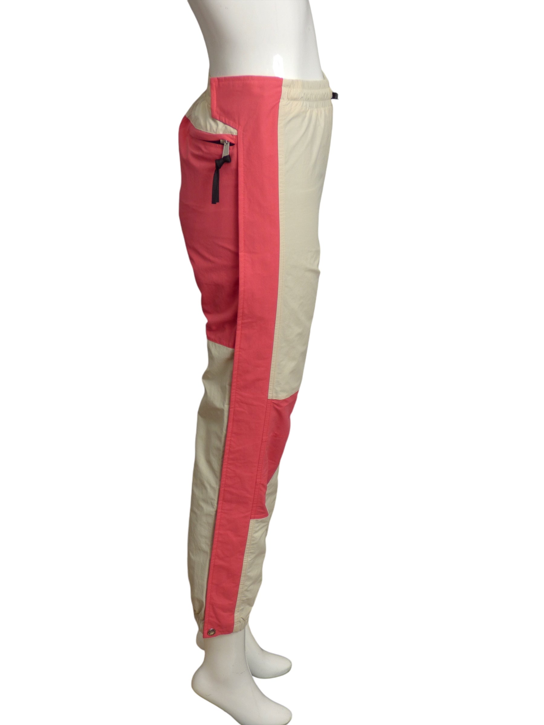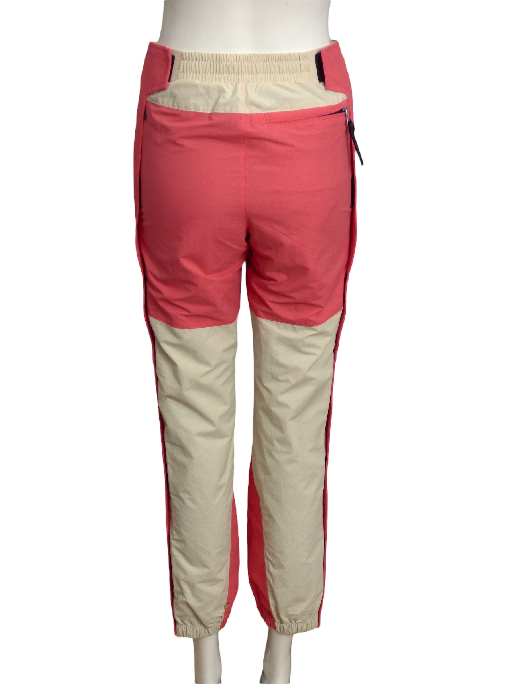 Description: Step into style with these GUCCI x THE NORTH FACE trek pants, in a bold coral and tan colorway. Elastic gathering at the front and back adds a comfortable fit, while a drawstring cord brings it all together. Open down the sides with hook and eye tap and then zippers for a unique touch. Plus, a zipper closing inset pocket on the back adds functionality with flair.