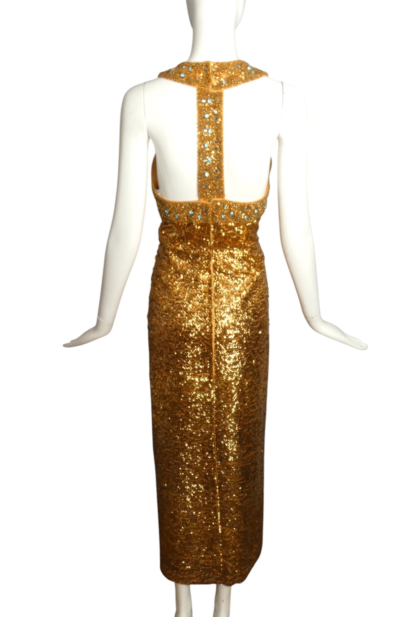 1960s Gold Sequin & Bead Halter Gown, Size 4