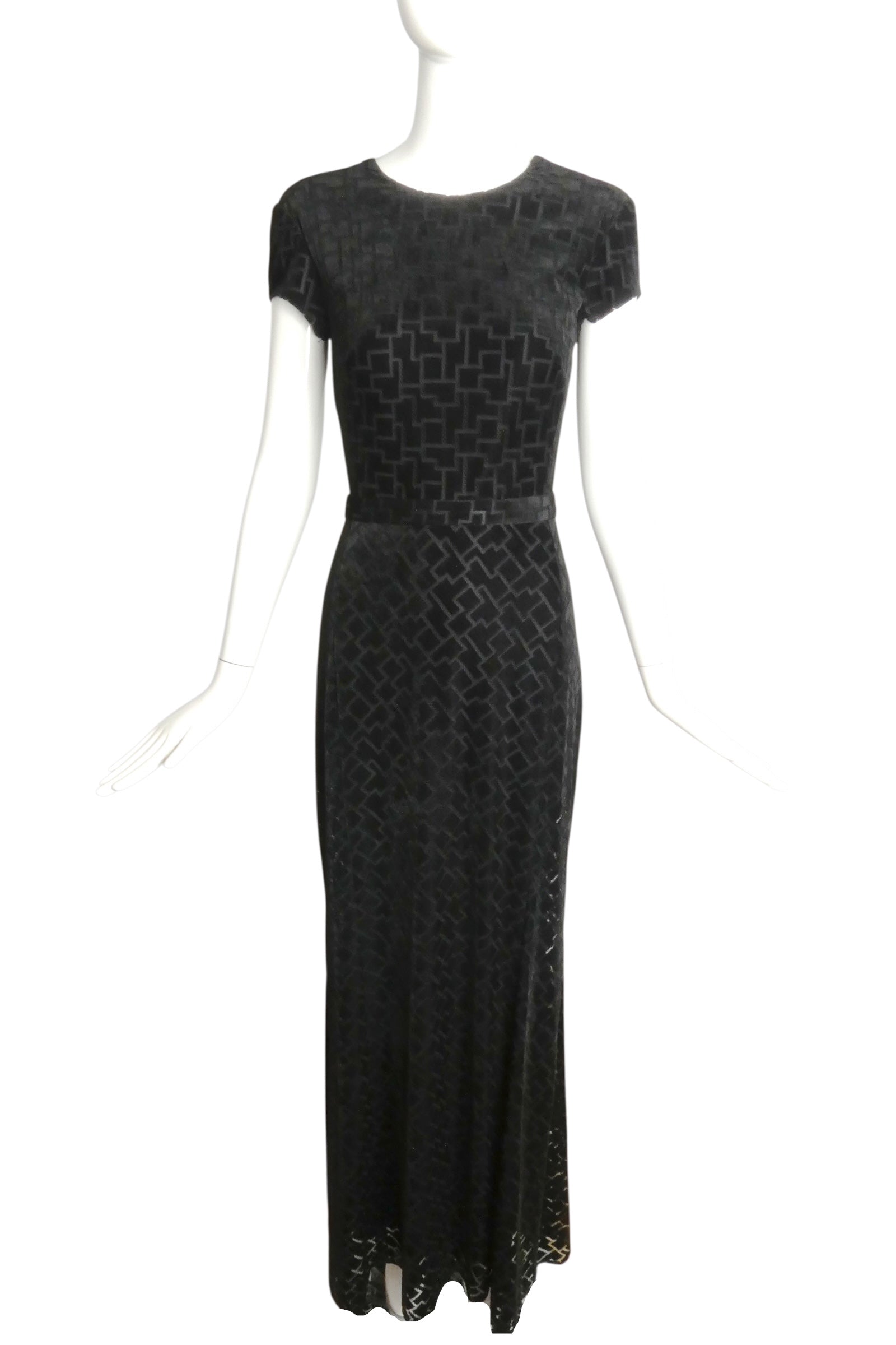 Description: From the fall 2012 runway comes this stunning Issa evening gown in black velvet knit with a playful Tetris-inspired embroidered pattern. It features a scoop neckline and a daring open back plunging to the waist, secured by a sleek black satin ribbon. This size 2 beauty hugs your curves and gracefully glides to the floor. Brand new with original tags and a price of $1025, it’s your ticket to turning heads at any special occasion.