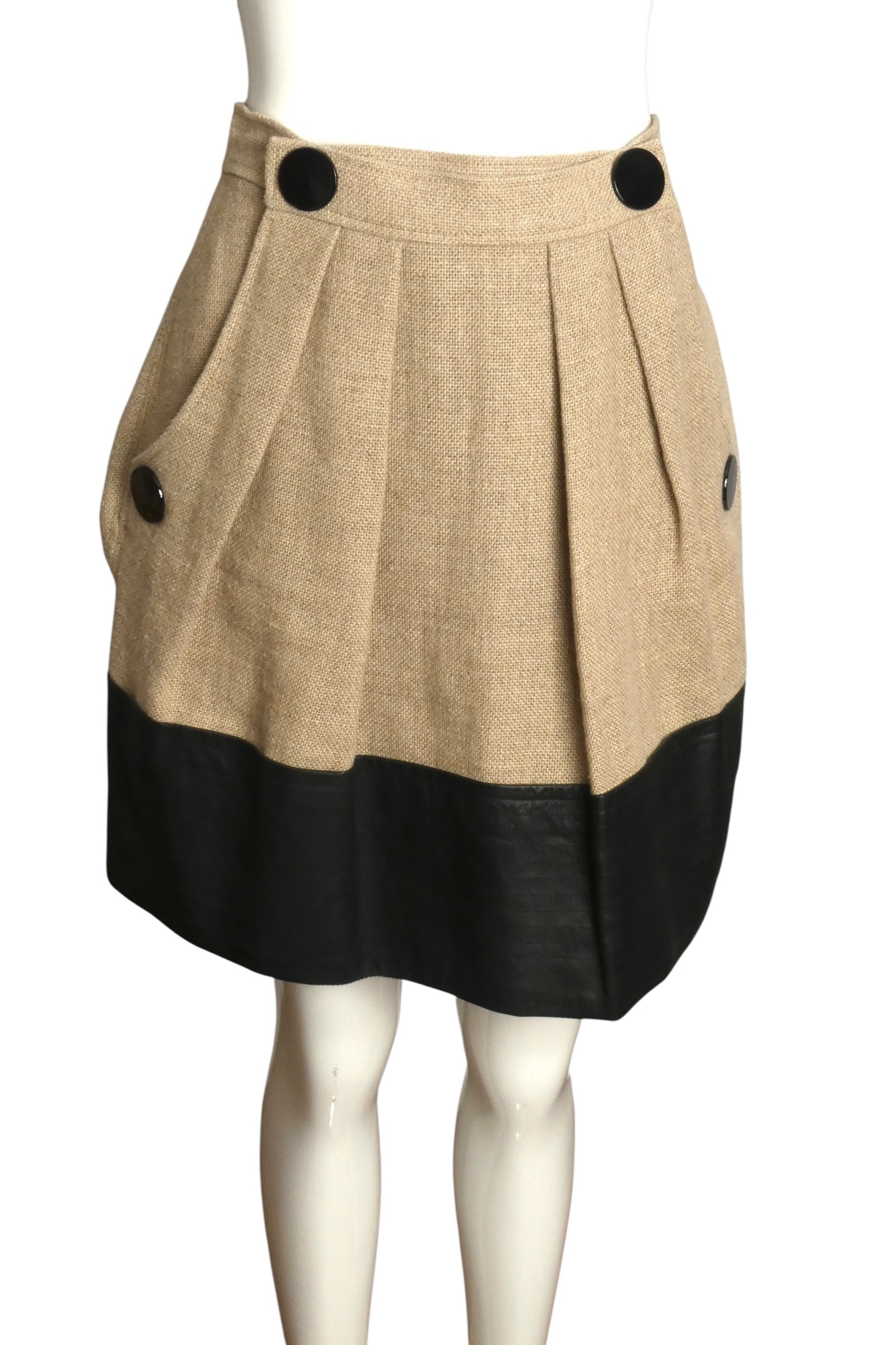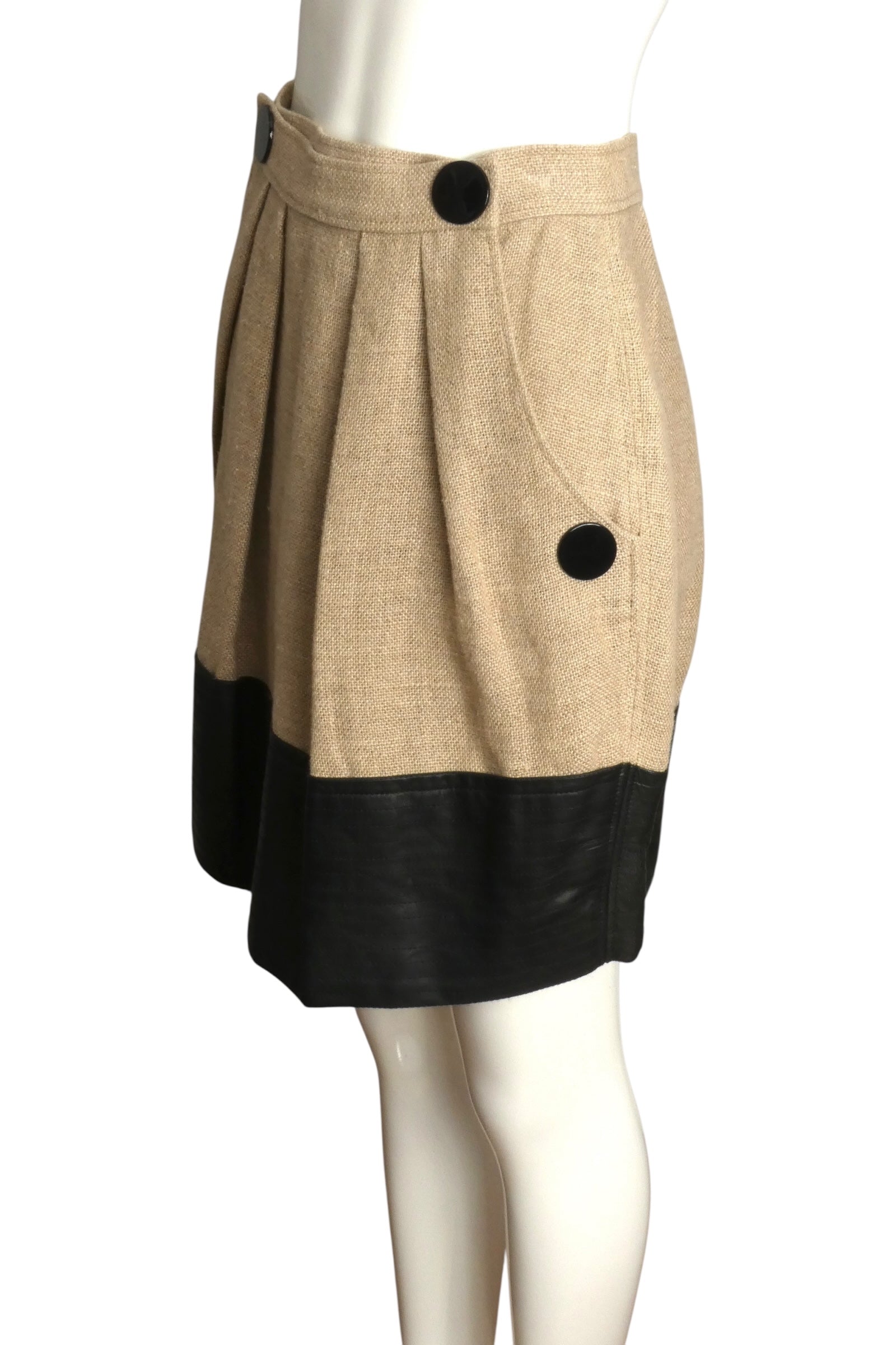 JC de CASTELBAJAC- NWT Linen & Leather Skirt, Size 6