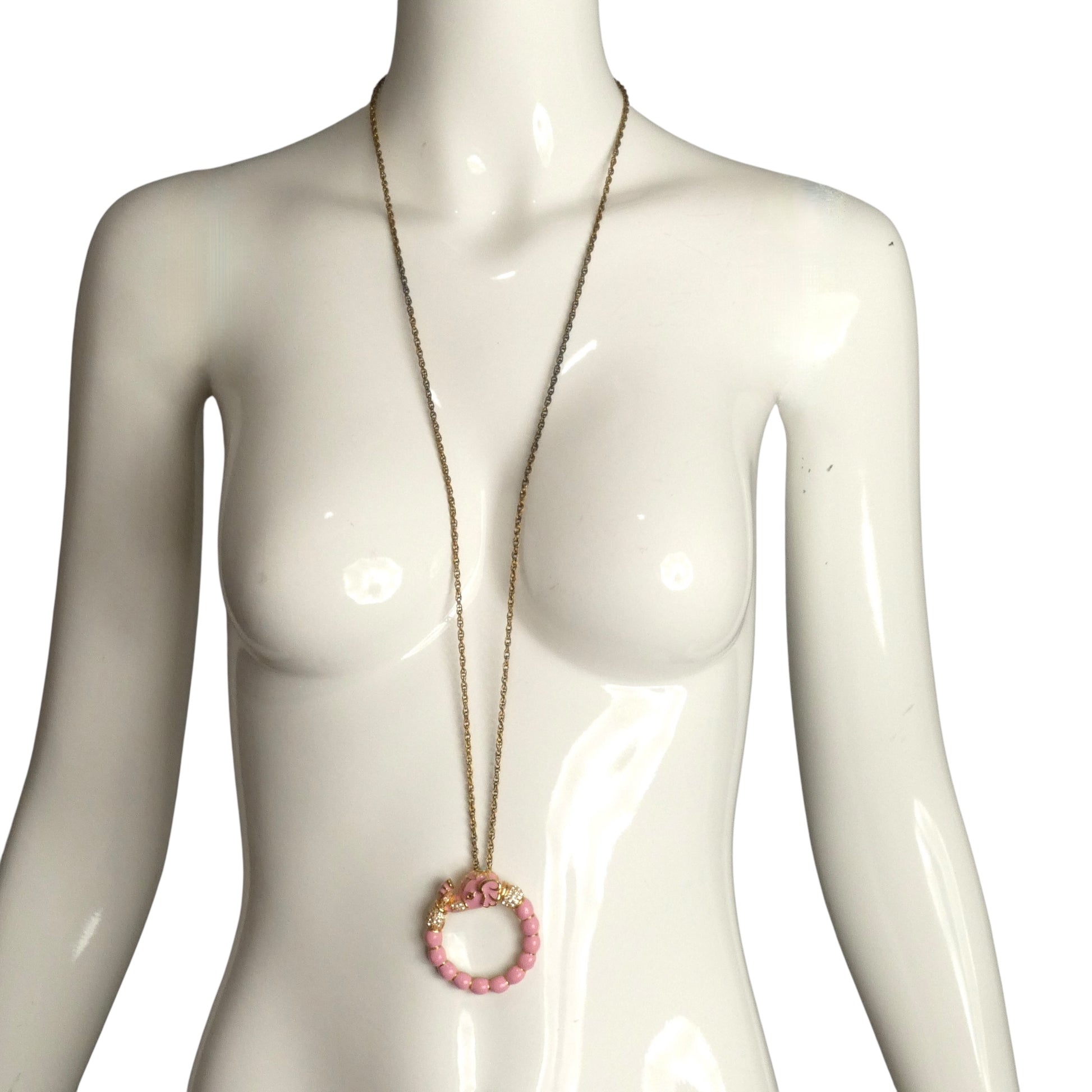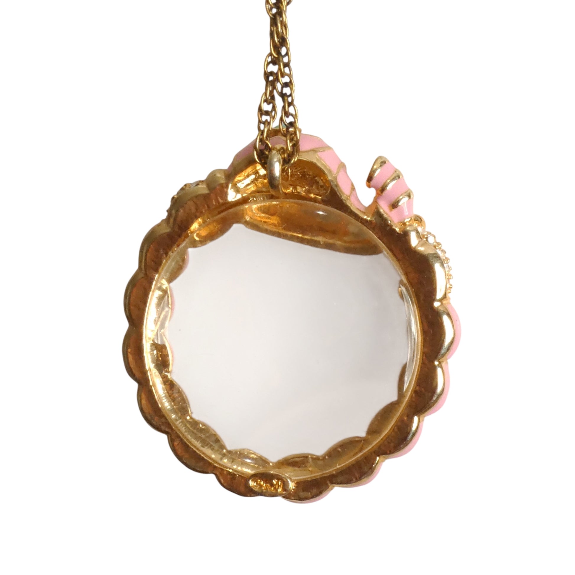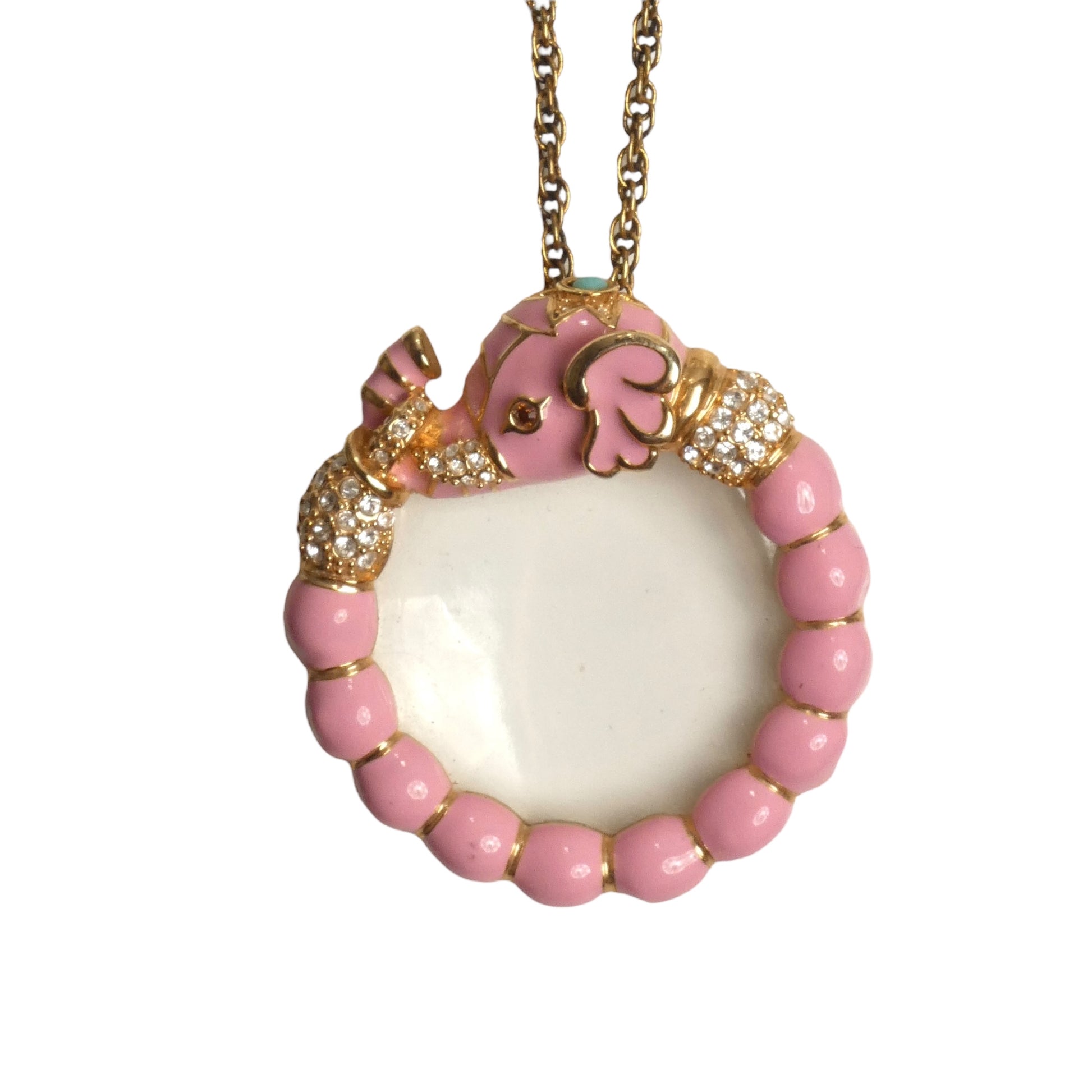 KENNETH J LANE- 1980s Pink Elephant Monocle Pendant