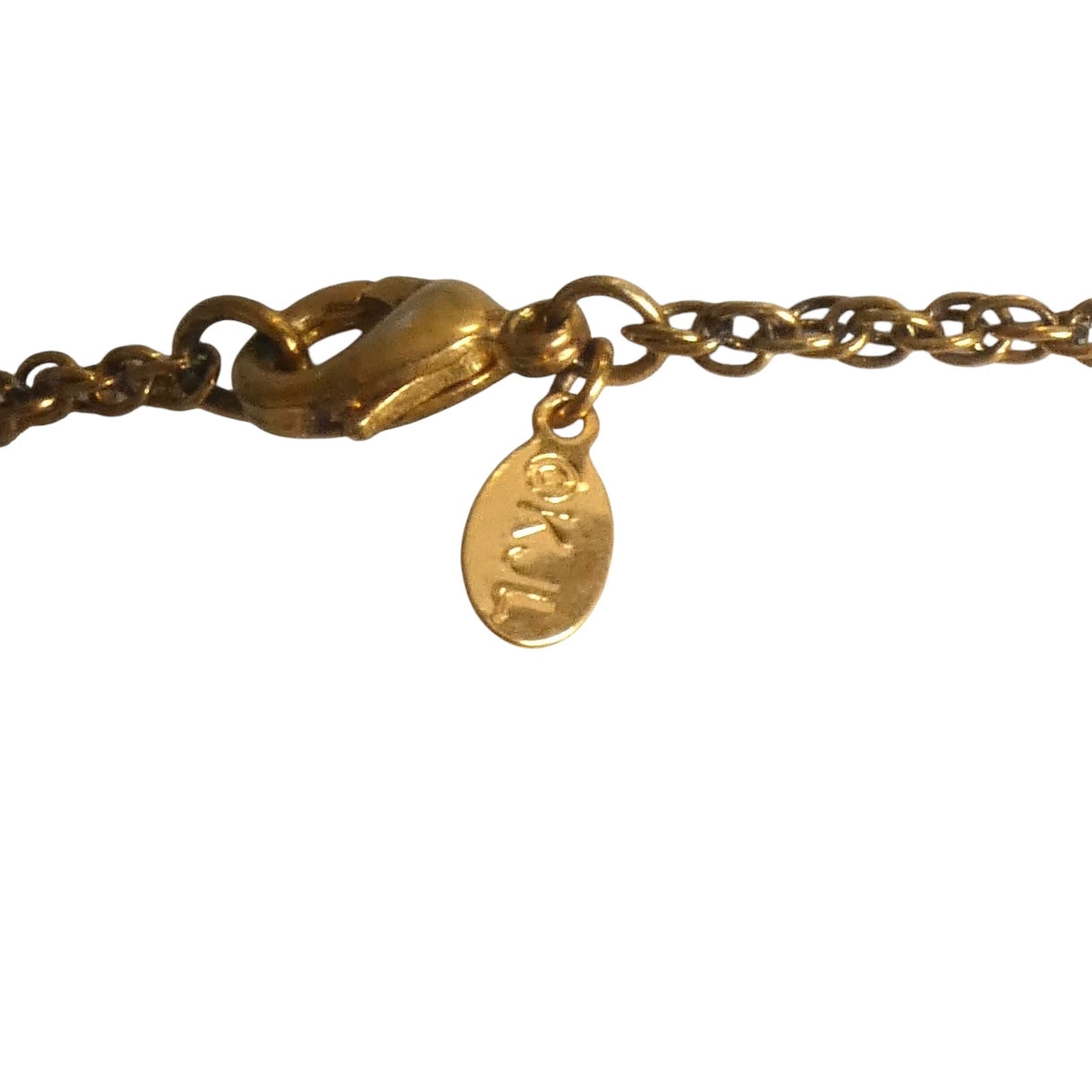 Description: This distinctive 1980s Kenneth J Lane necklace features a long gold chain with a secure locking clasp, highlighted by a pink elephant medallion pendant. The monocle design showcases the elephant’s head at the top, with its trunk elegantly looped through a gold hoop. Accented with sparkling rhinestones, this piece radiates refined craftsmanship and playful sophistication.