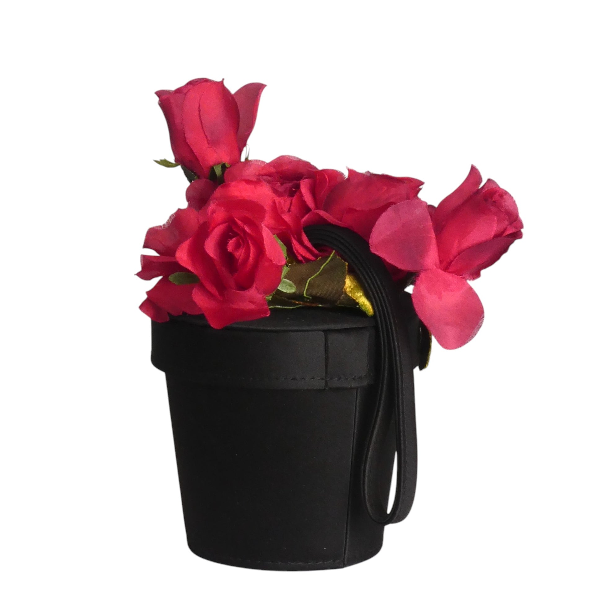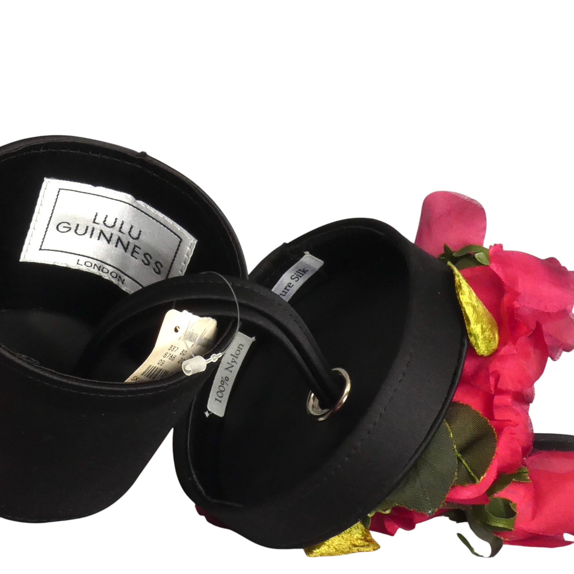 Description: Elevate your accessory game with the stunning Lulu Guinness purse, designed to resemble a charming flower pot! This unique bag features a sleek black satin finish and a delightful lid adorned with vibrant pink rose buds, making it the perfect blend of elegance and whimsy. Whether you're heading out for brunch or a night on the town, this eye-catching purse is sure to turn heads and spark conversations. Don't miss out on adding this floral-inspired statement piece to your collection!