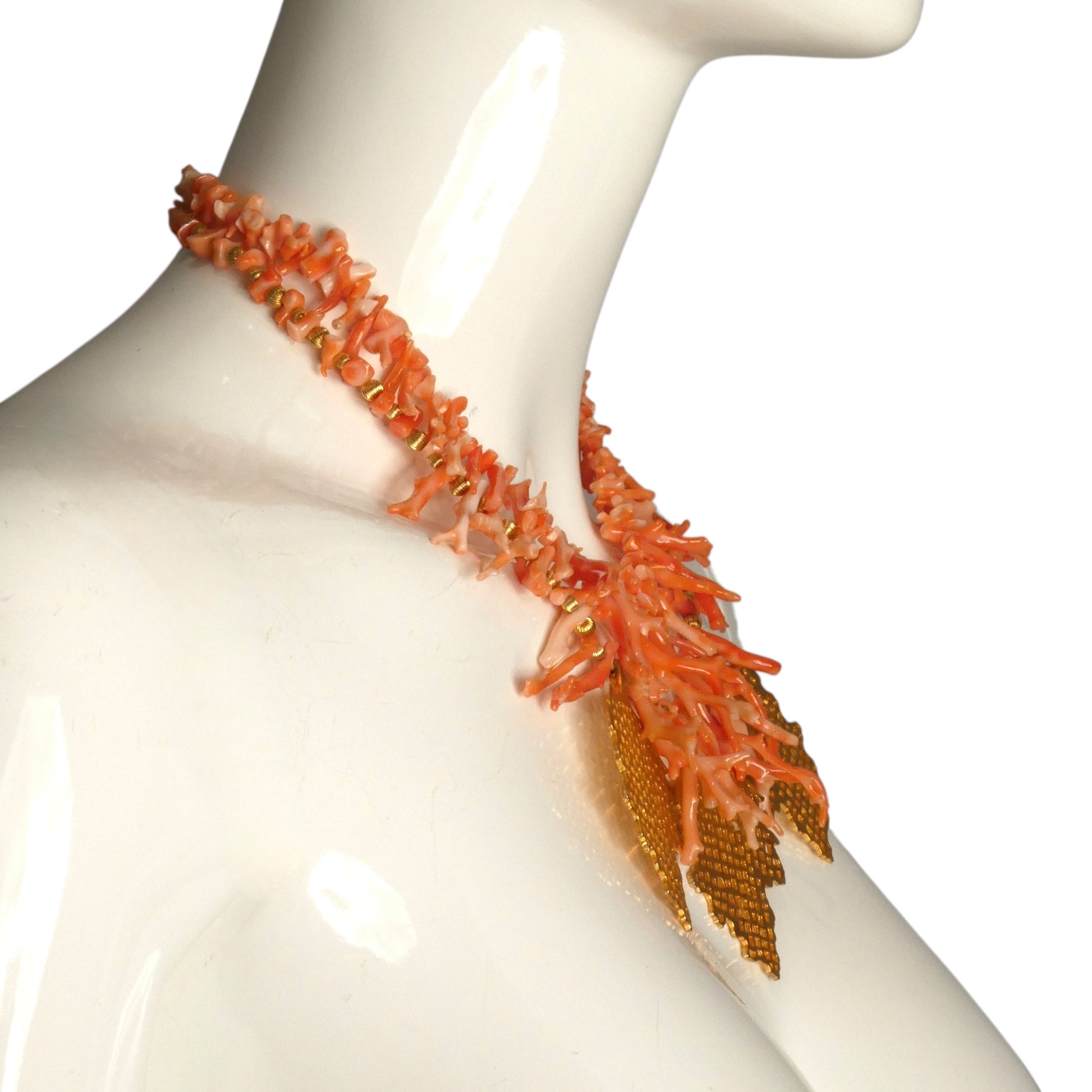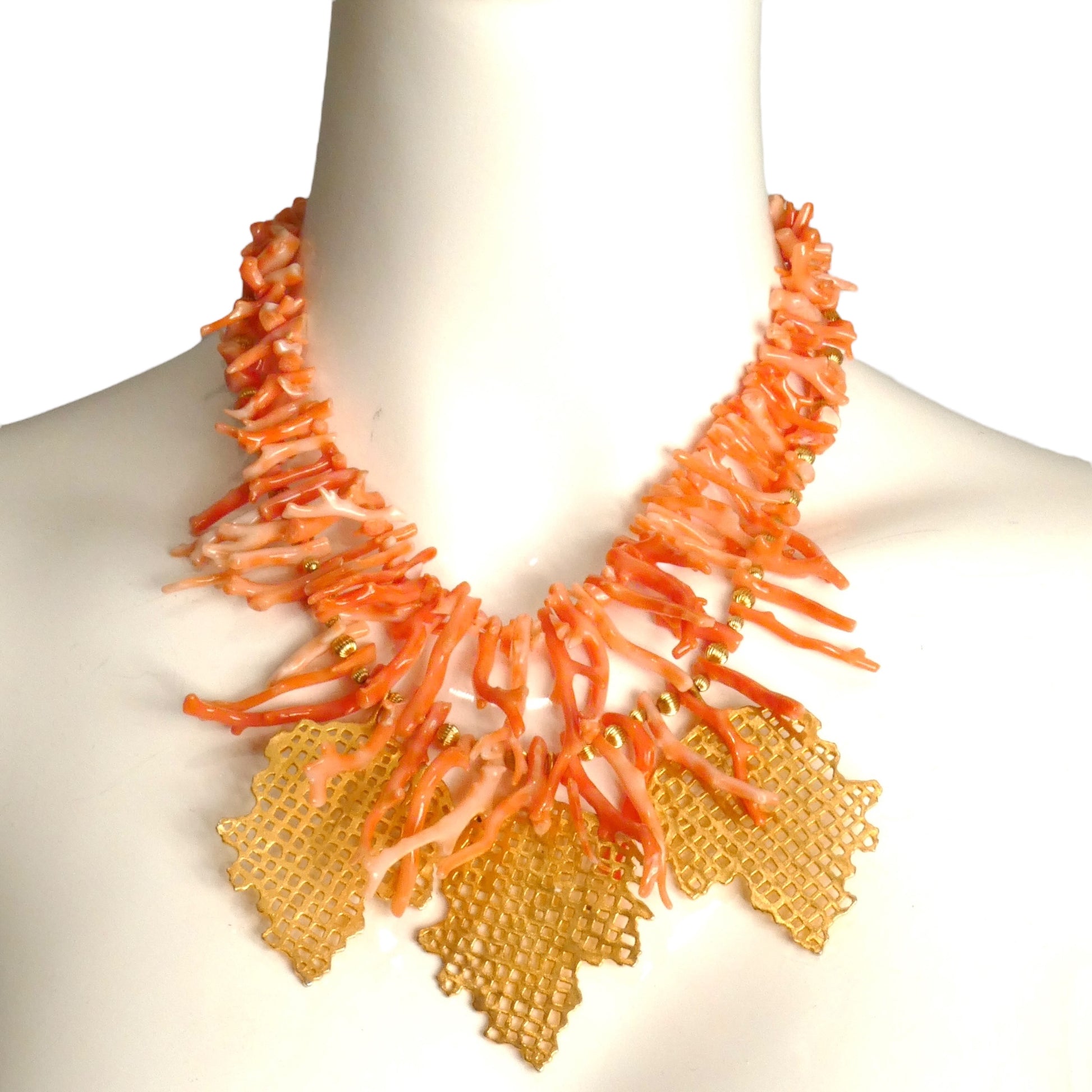 MARY MCFADDEN- 1980s Coral & Gold Leaf Necklace