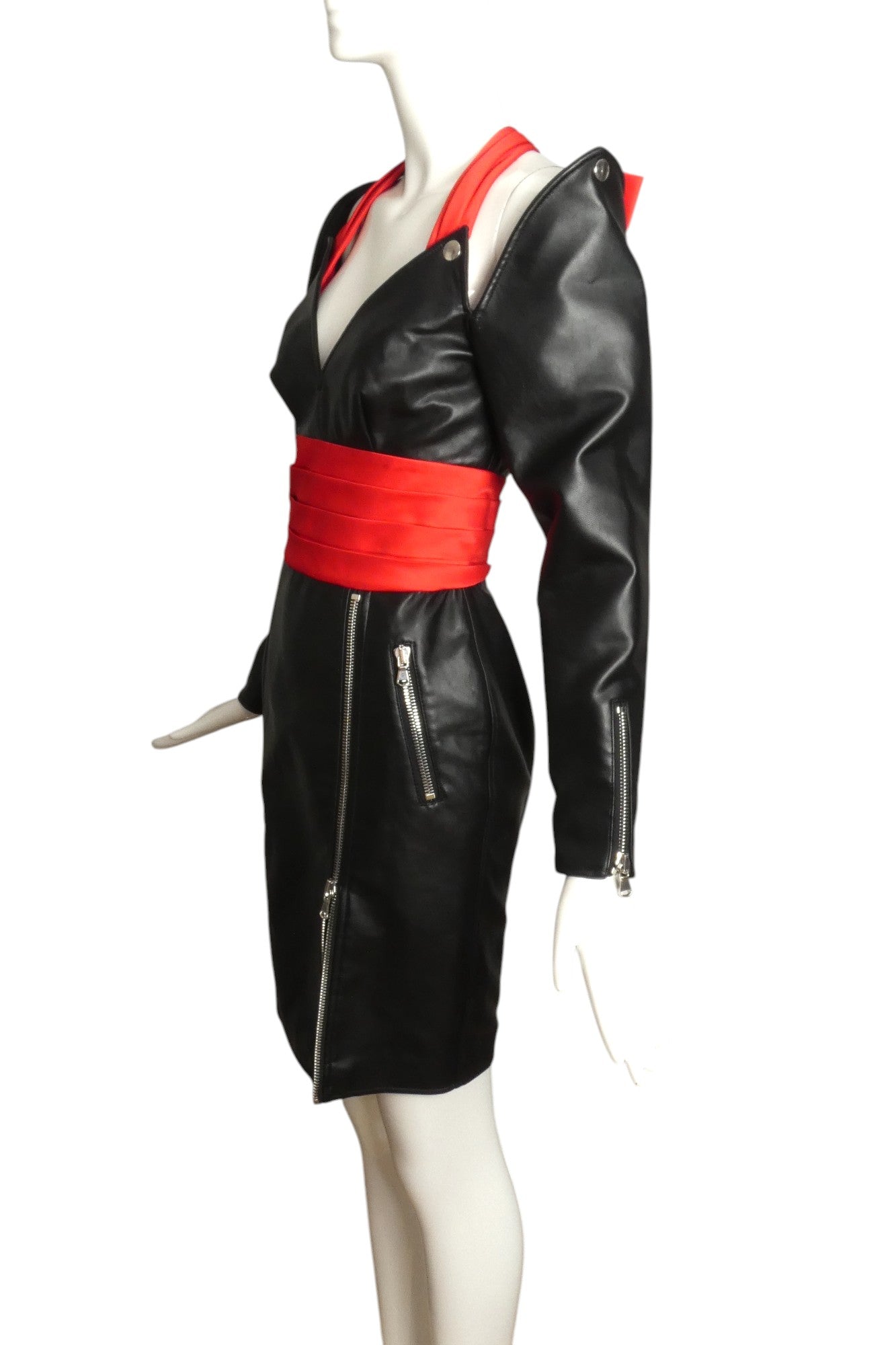 MOSCHINO COUTURE- 2021 Black Leather Moto Dress, Size 6