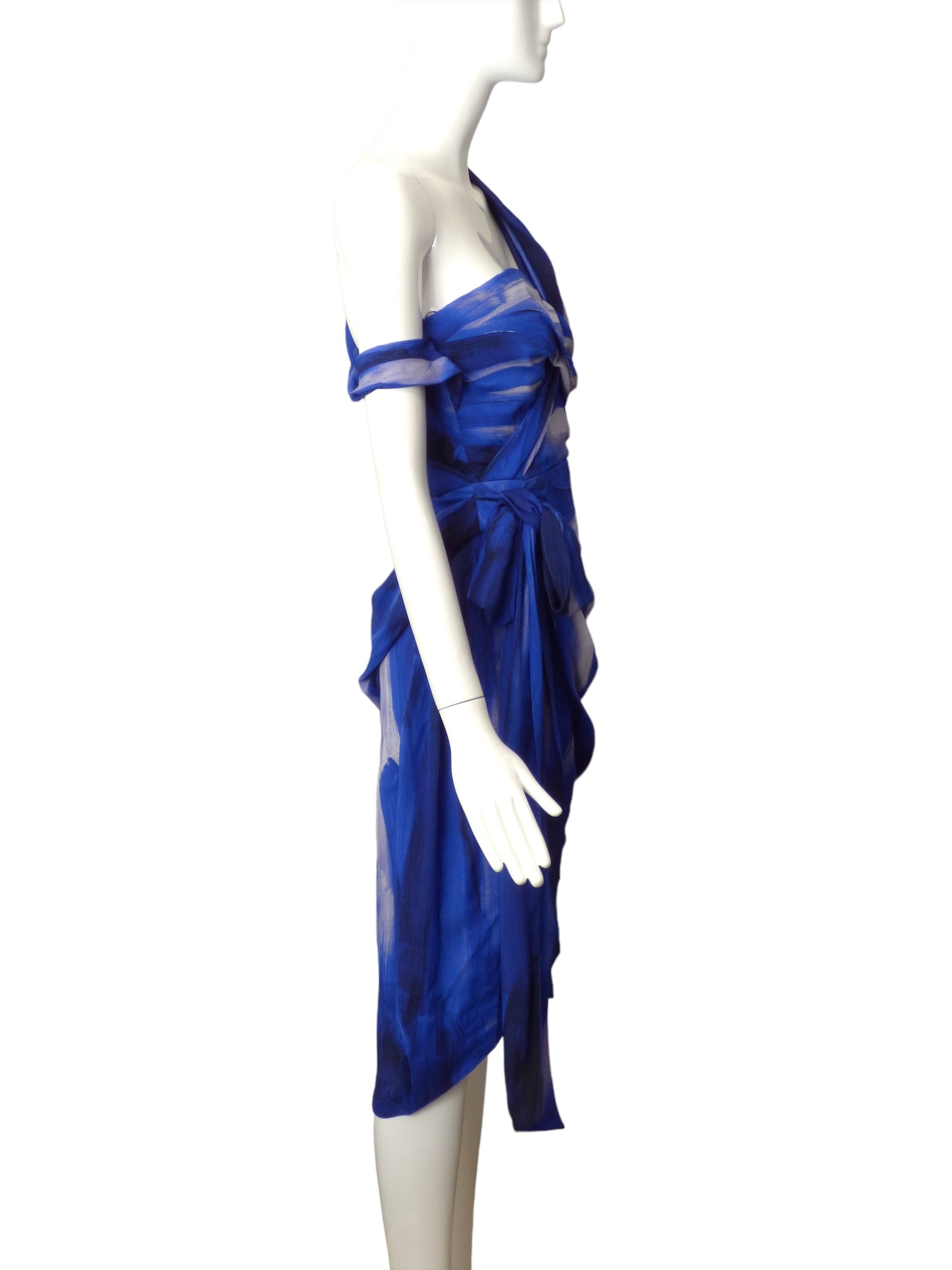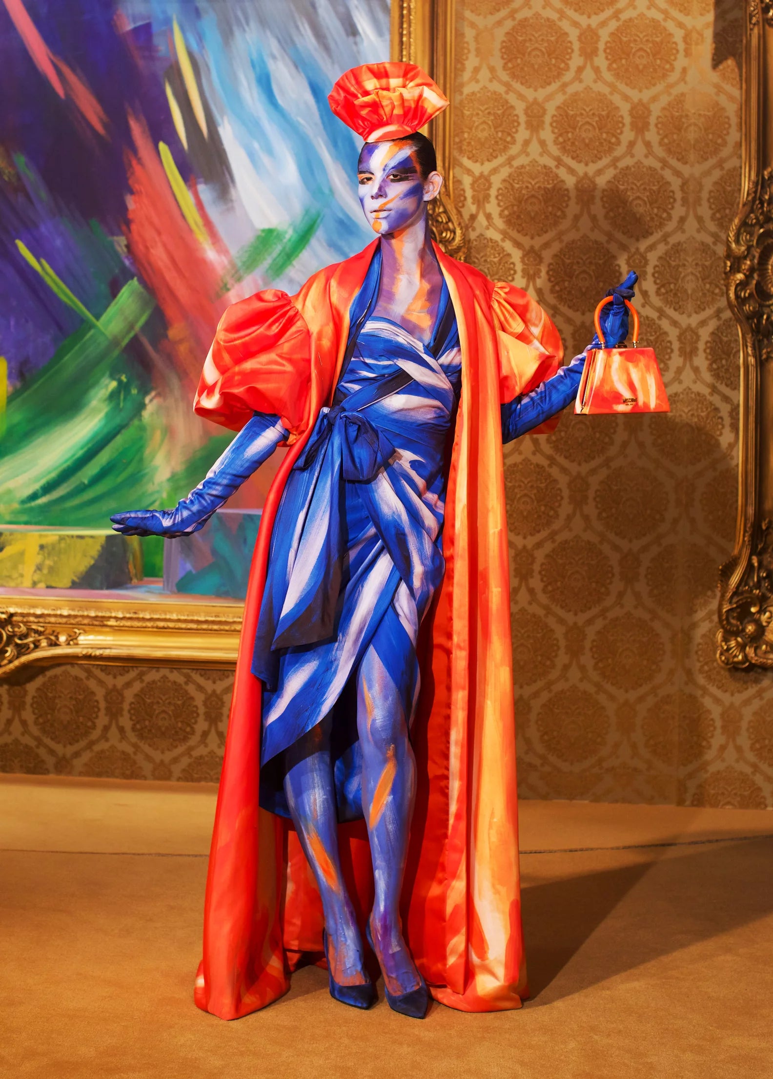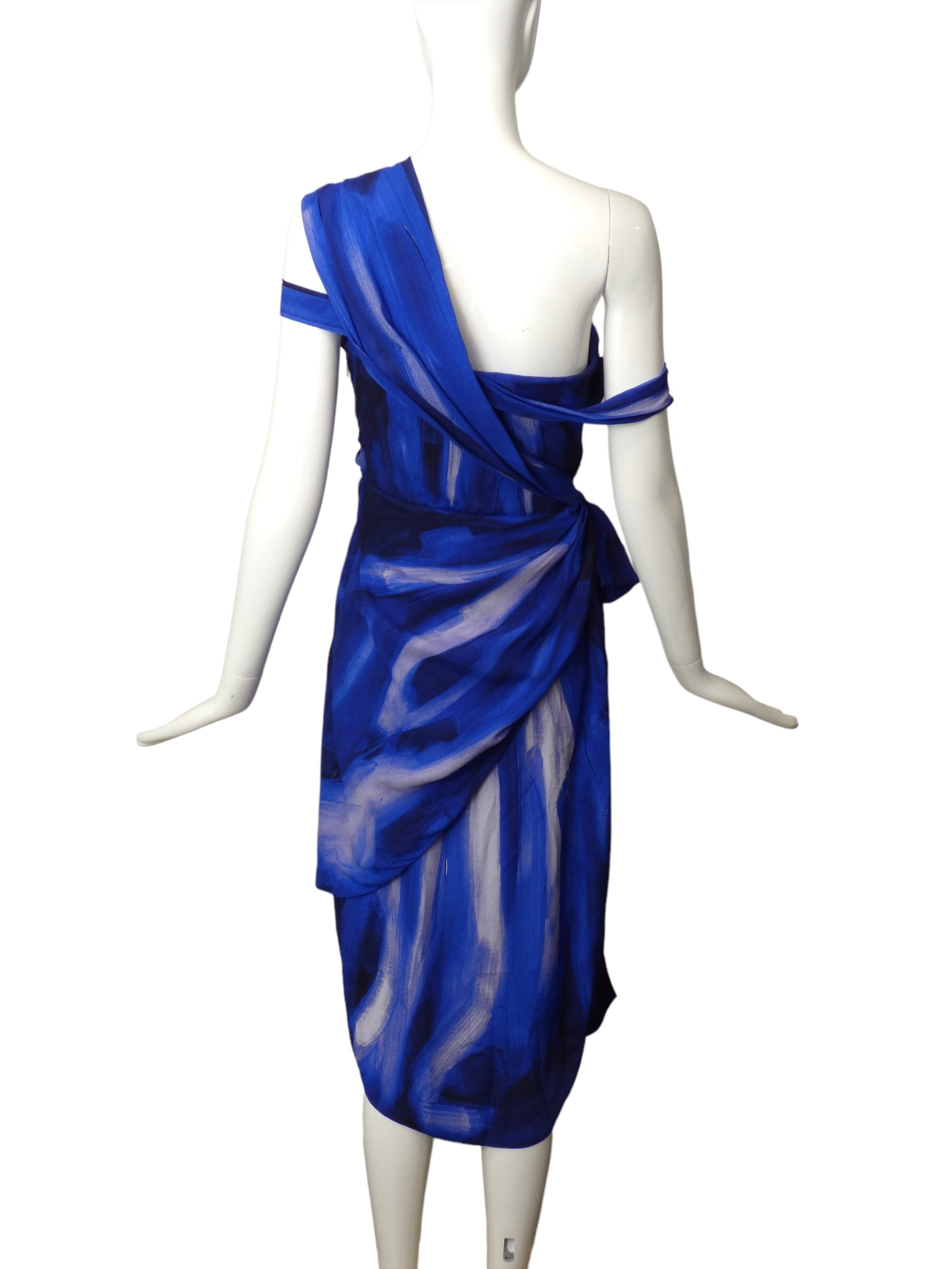 Description: Elevate your fashion style with this runway collection dress, where art and fashion come together. This draped gown showcases intricate brush strokes and fabric draping, making it perfect for a visit to the gallery or any special occasion.