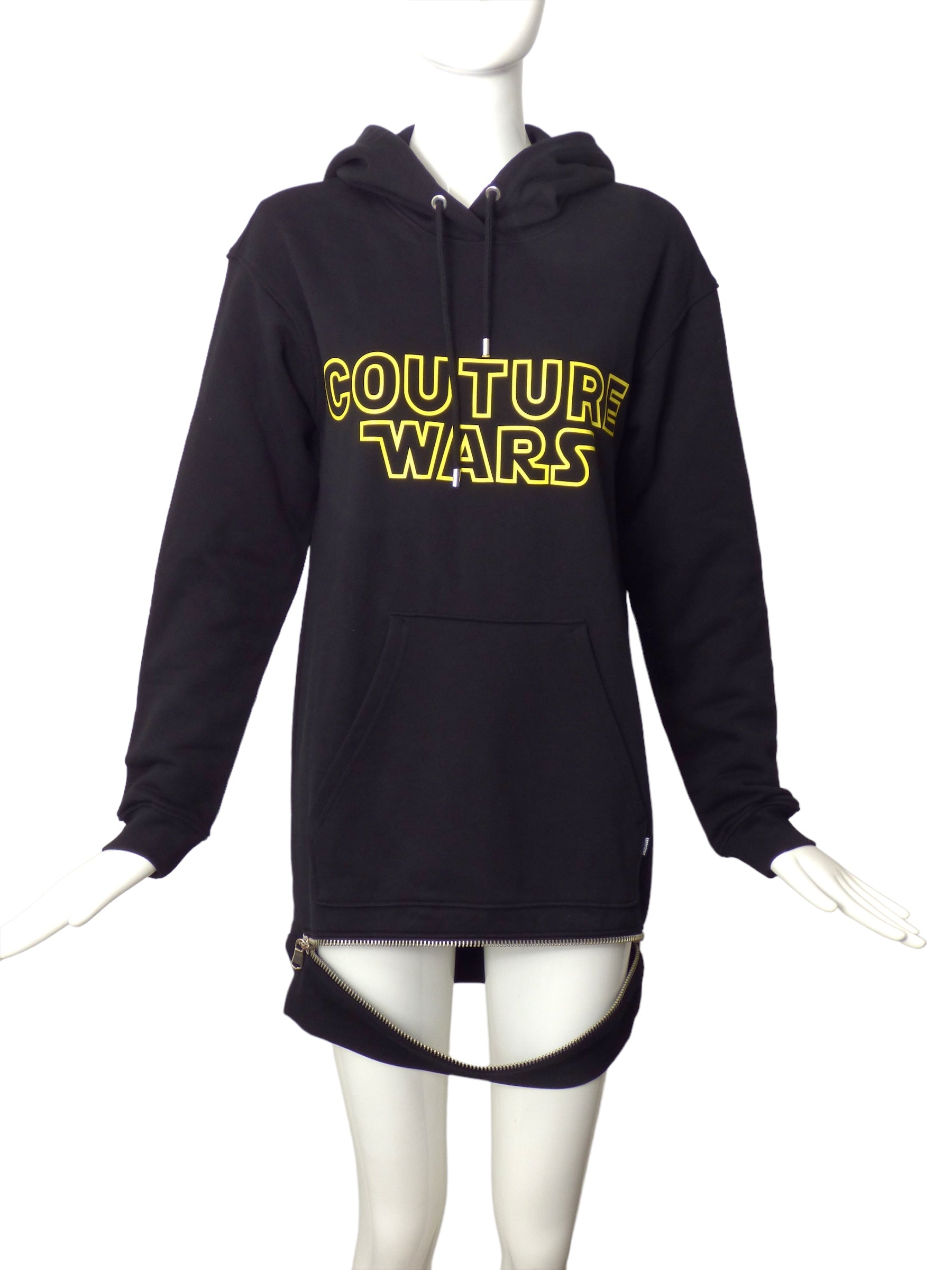 Description: Step into the future of fashion with our "Couture Wars" sweatshirt dress, designed to bring out your intergalactic chic. This trendy dress features a comfortable hoodie, a convenient front pocket, and a unique zipper around the bottom that allows you to remove the waistband for a customizable fit. With the original store tags still attached, you can be sure that you're getting a brand new, high-quality piece that will make heads turn wherever you go. Embrace your inner fashionista and make a statement with this stylish and versatile sweatshirt dress.