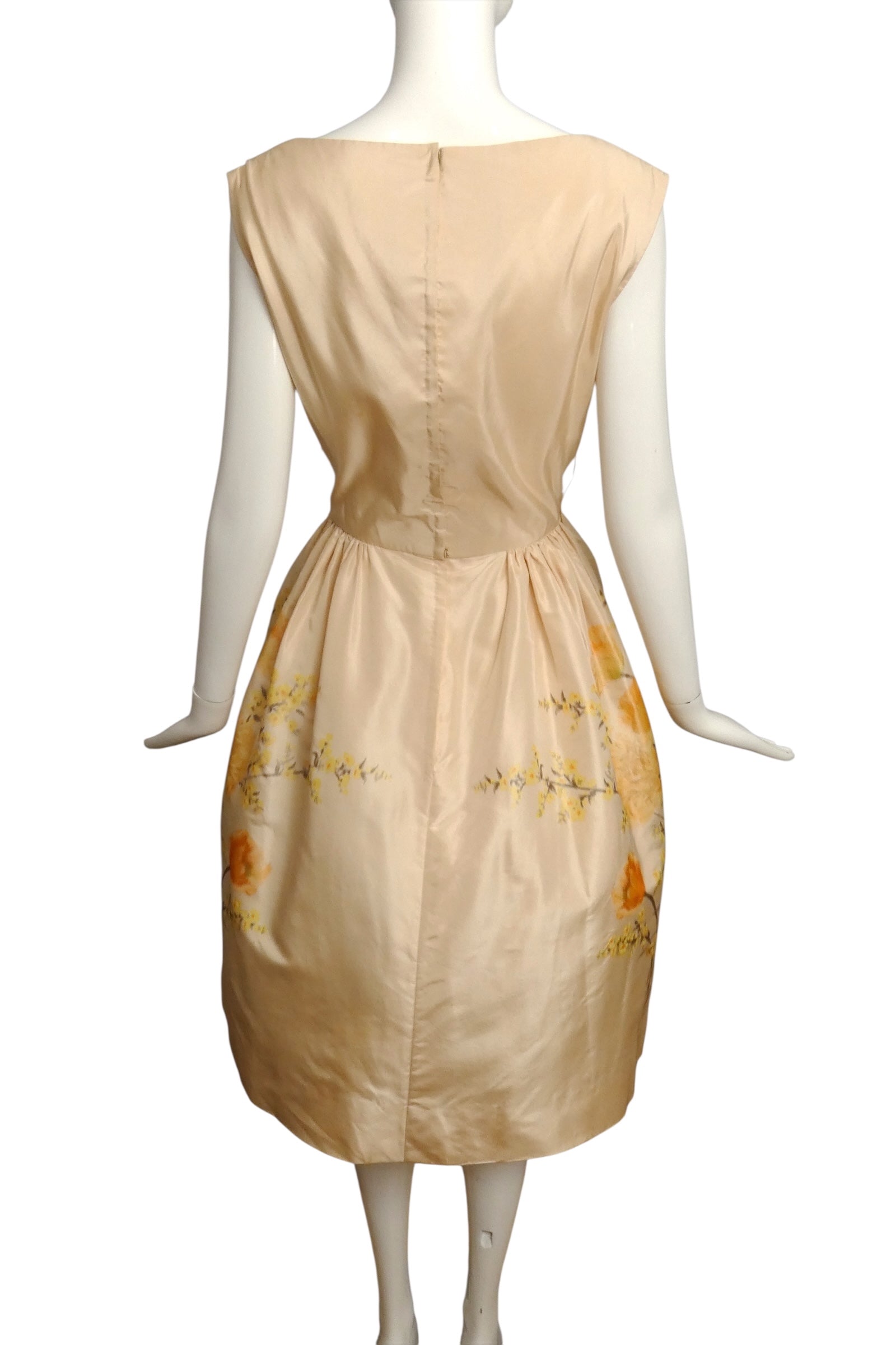 PAUL WHITNEY- 1950s Floral Silk Dress, Size 4