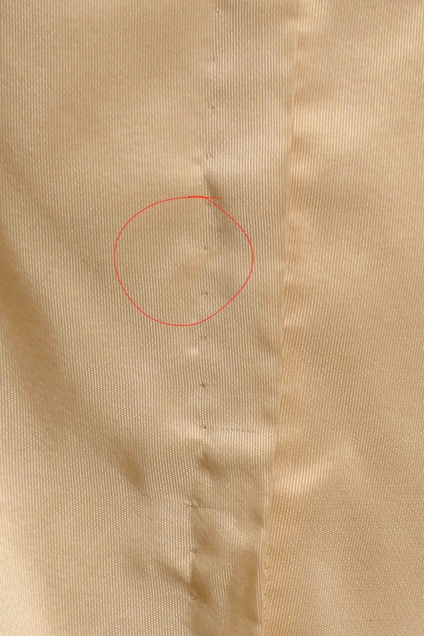 Condition: There is one pea size spot on the back bodice and water staining on the lower back skirt which is hardly noticeable.