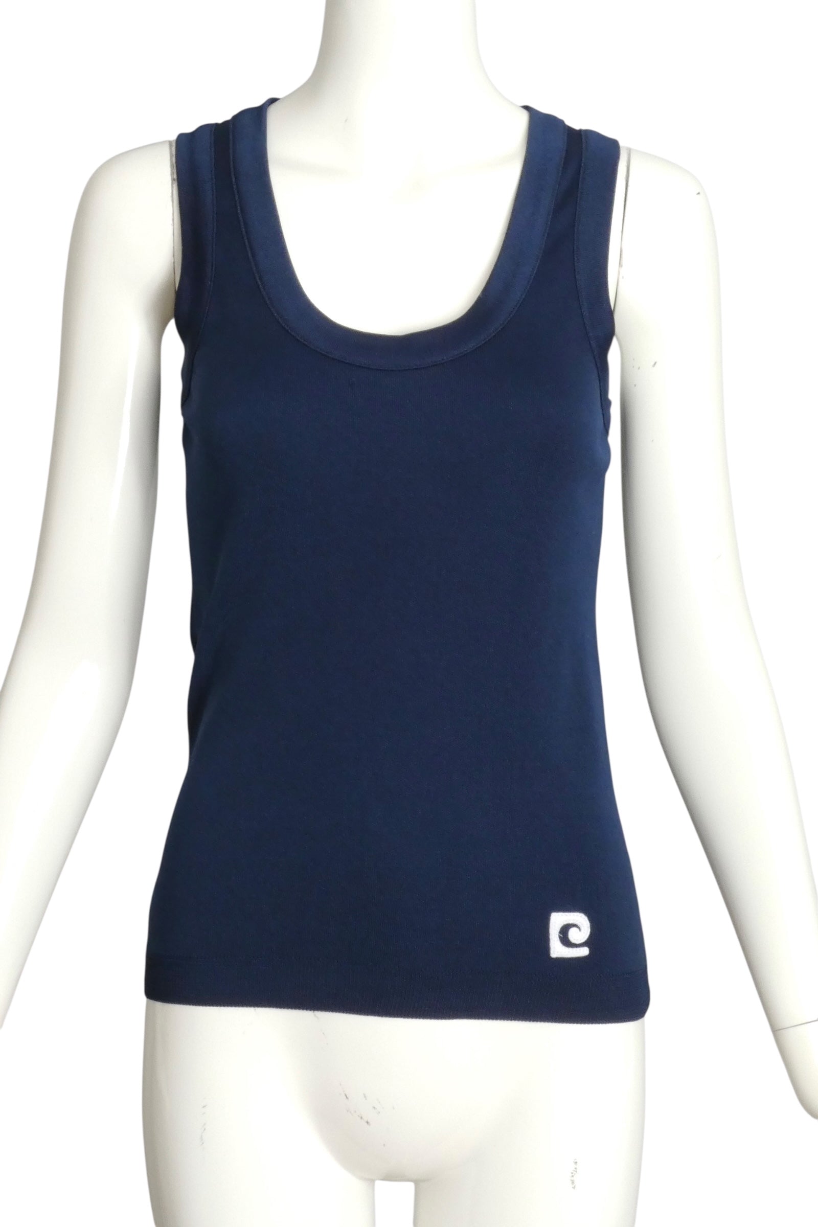 PIERRE CARDIN- 1970s Blue Knit Tank Top, Size 4