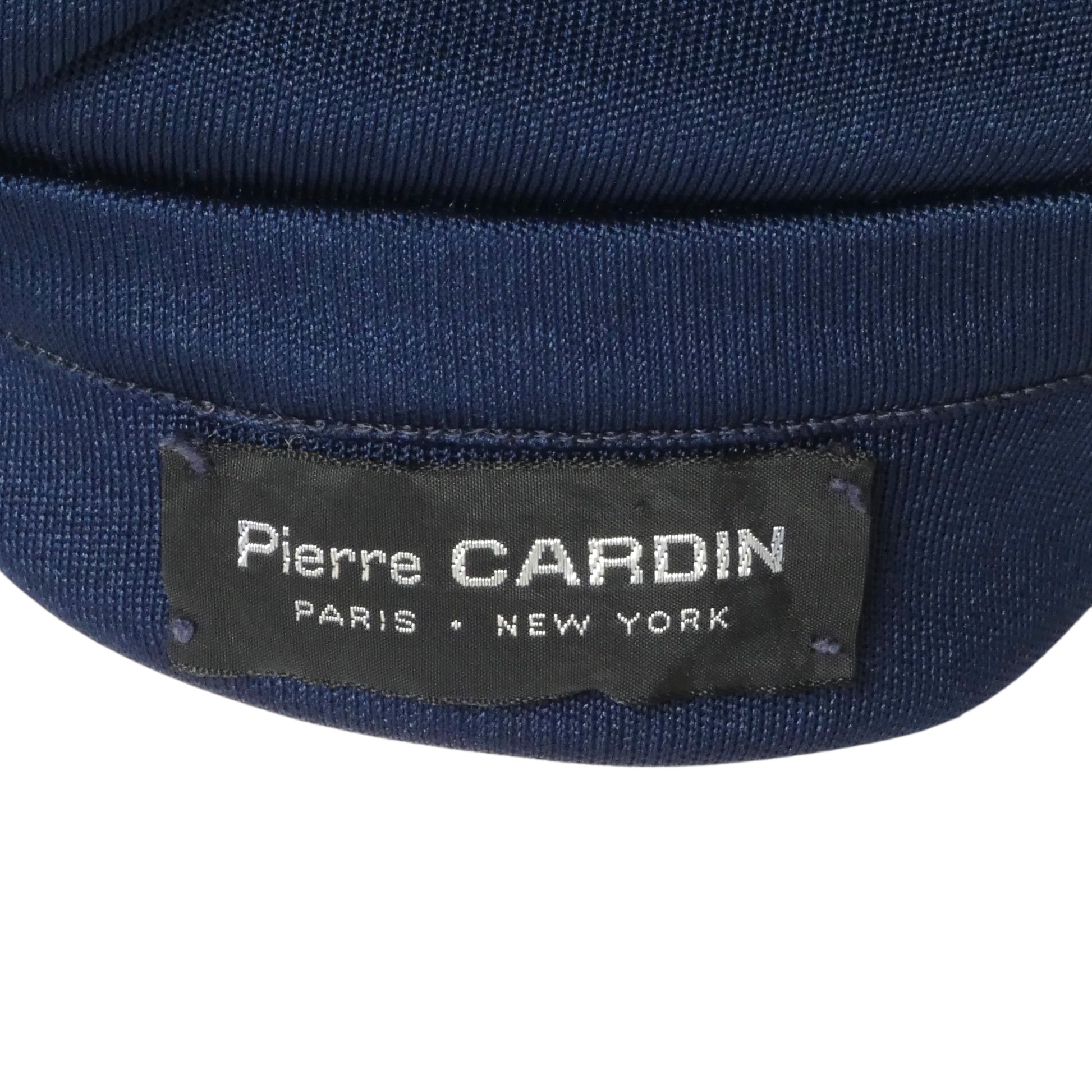 Description:This 1970s Pierre Cardin navy jersey knit tank top features a striking plunging neckline and a wide neck band that highlights its vintage silhouette. Crafted in soft, breathable fabric, it offers both comfort and style. The Cardin logo appliqué at the lower left waist adds an authentic designer detail, making this piece a distinctive and elegant addition to any retro-inspired wardrobe.