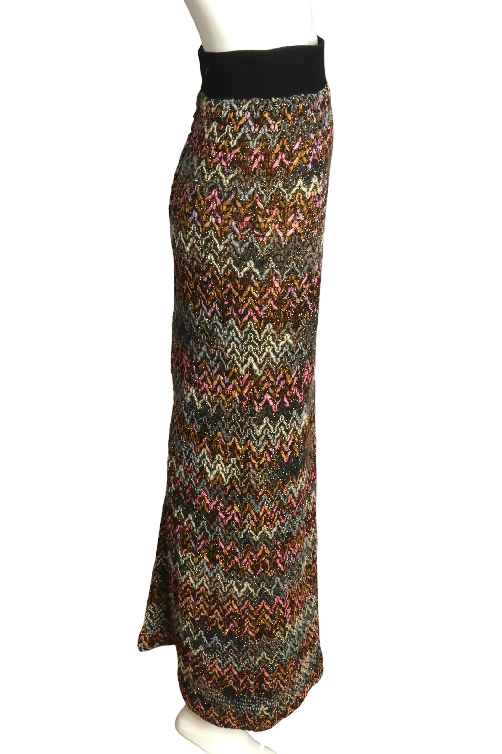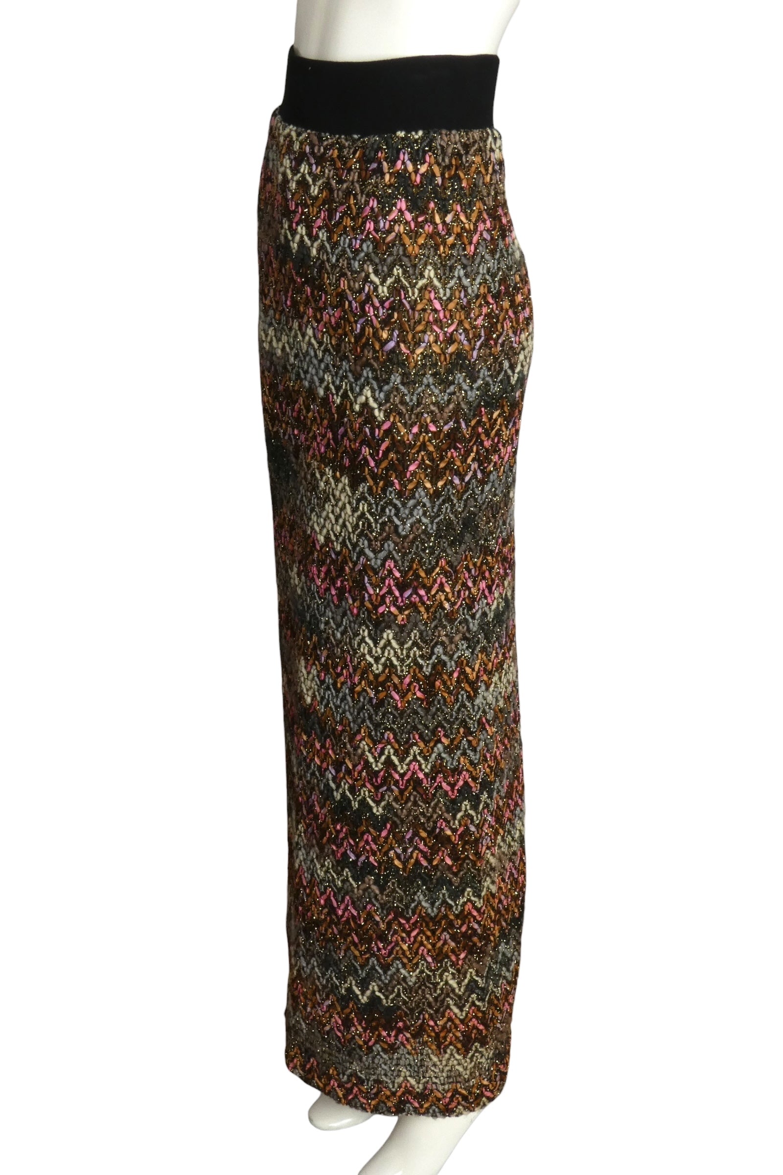PIERRE CARDIN HAUTE COUTURE- 1970s Metallic Ribbon & Knit Maxi Skirt, Size 6