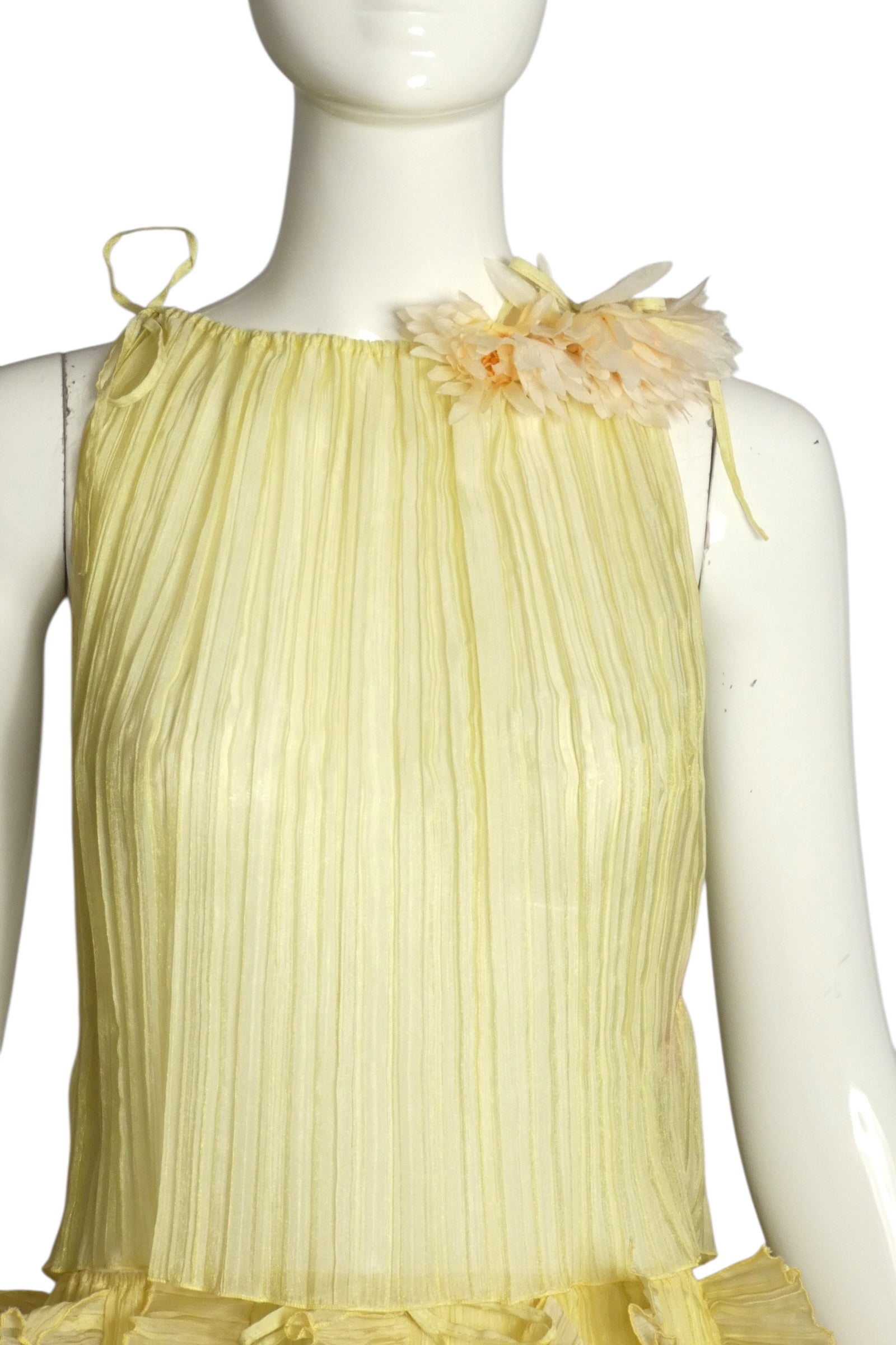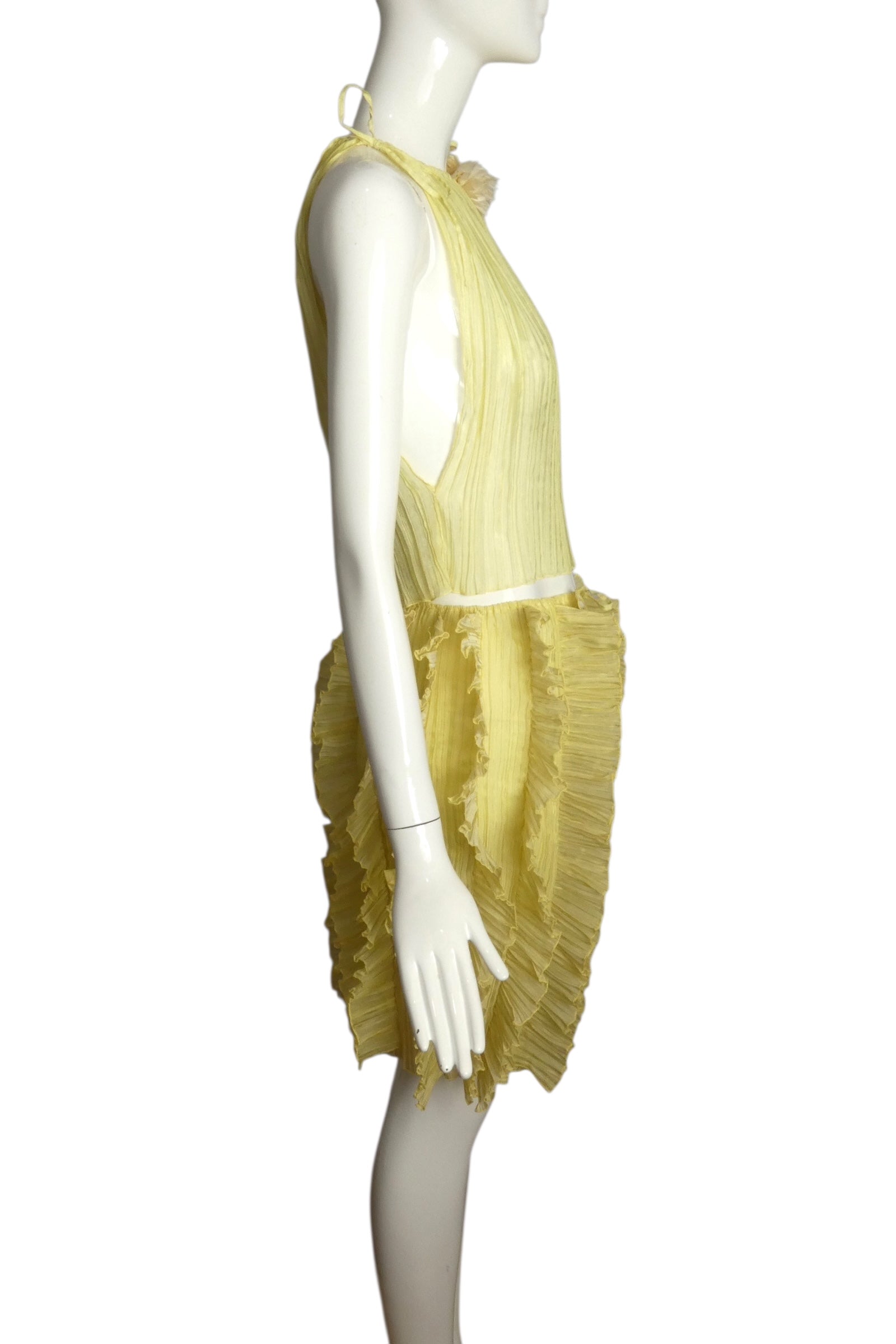 PIERRE CARDIN (HAUTE COUTURE)- 2000 2pc Yellow Crinkle Pleat Ensemble, Size 4