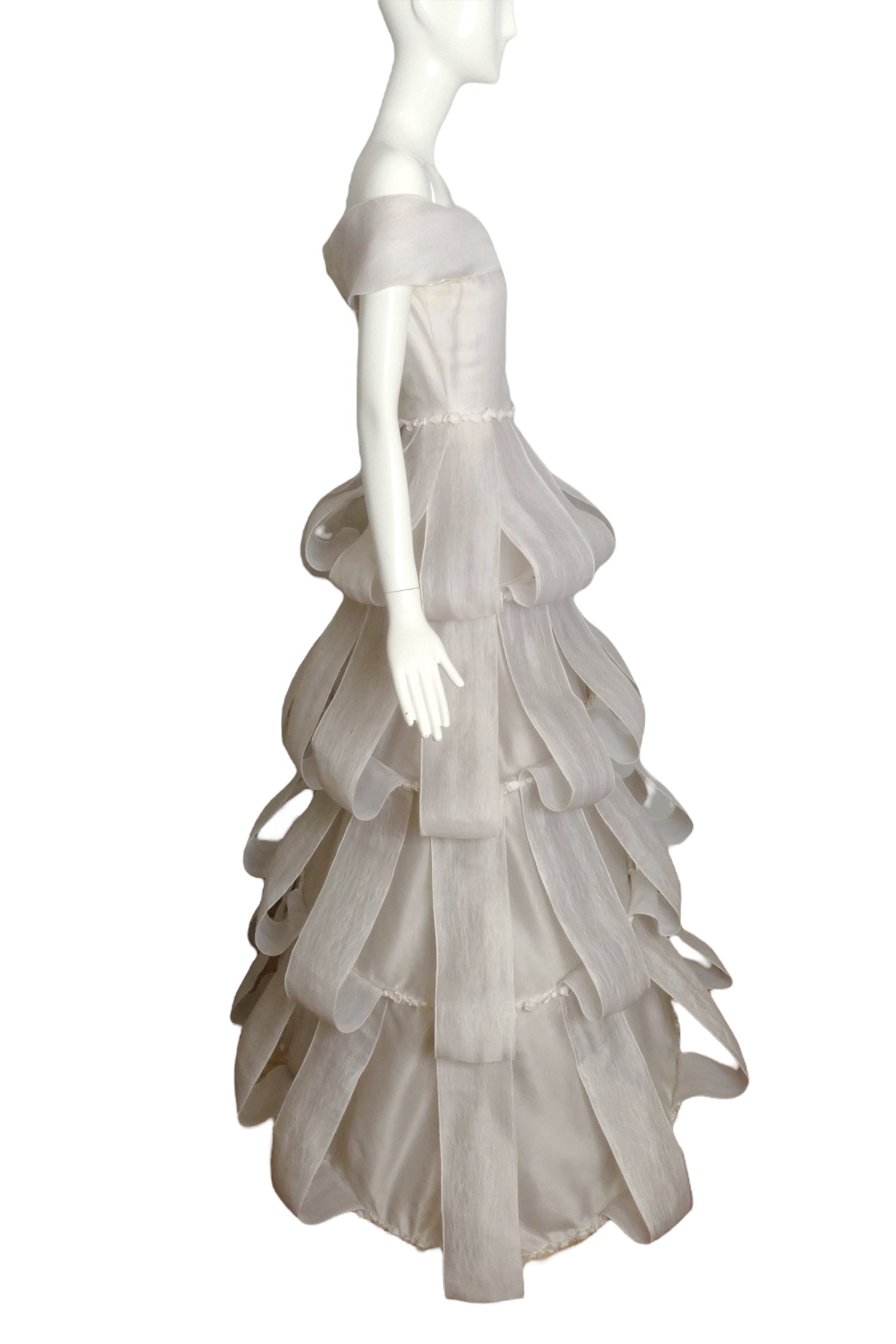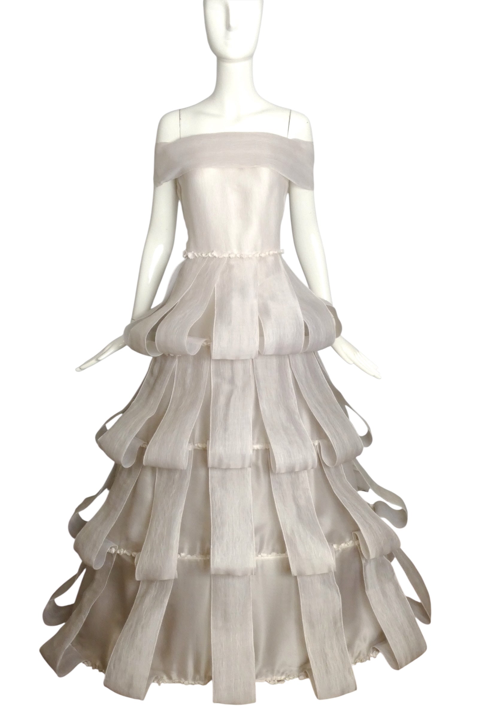 PIERRE CARDIN (HAUTE COUTURE)- 2000 White Organza Tiered Wedding Gown, Size 8