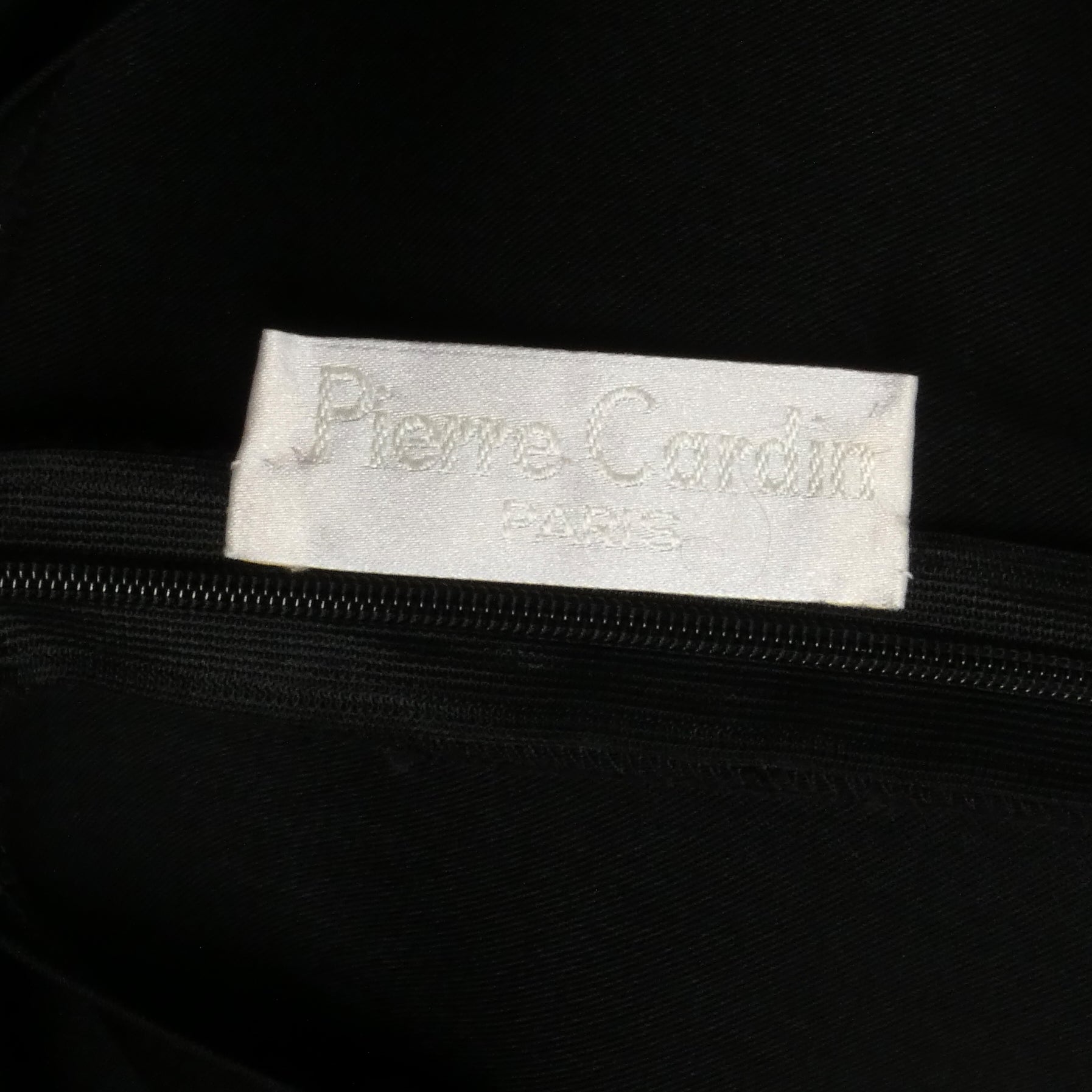From Pierre Cardin's 2004 collection, this trapeze dress features a distinctive pattern that elevates its clean design. The scoop neckline and diagonal bust darts offer a flattering silhouette, while the sateen front detail resembles serger snips, adding a visual texture and depth. A contrasting black panel on the back creates a striking visual balance, making this size 8 dress a refined choice for those who appreciate subtle couture craftsmanship.