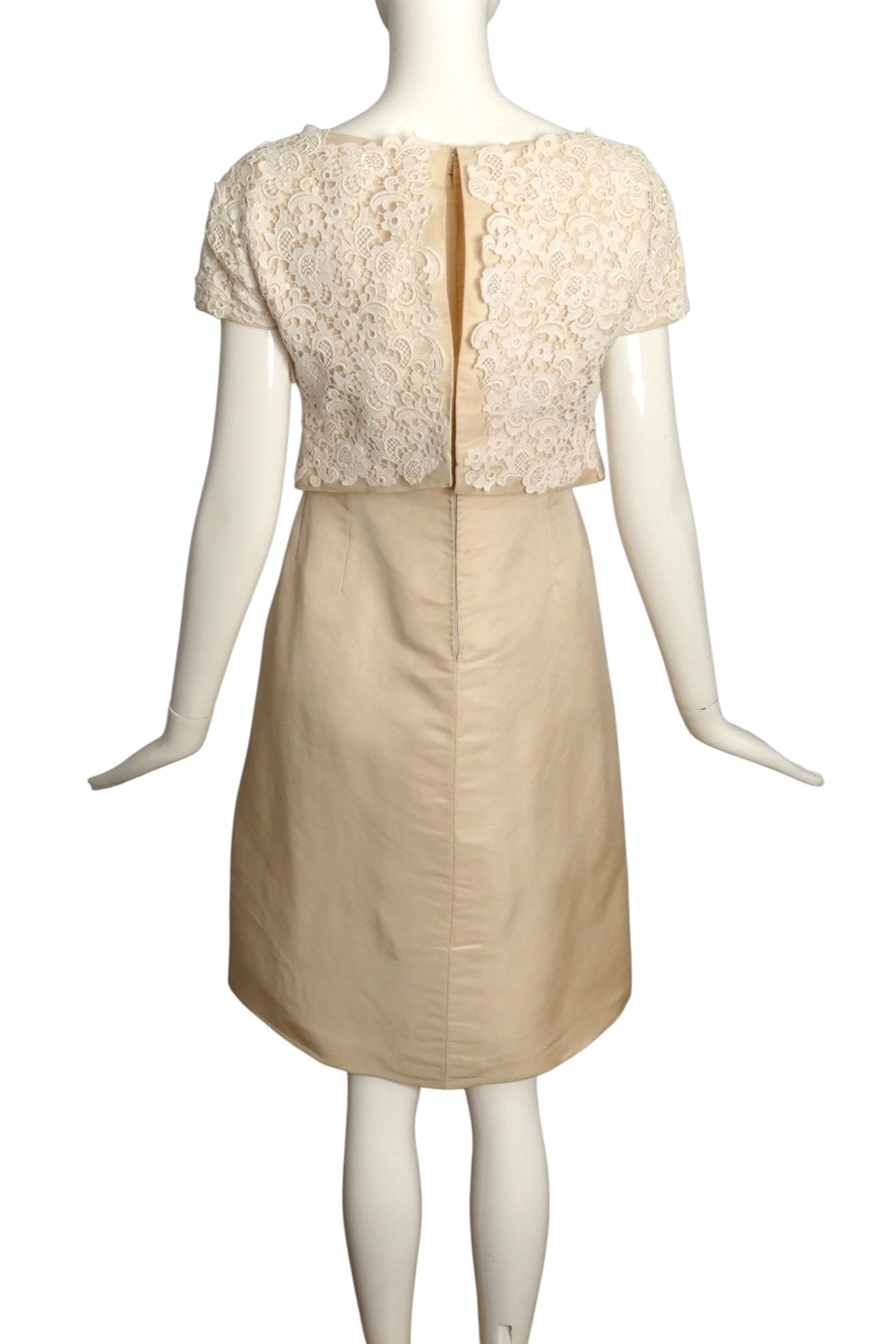 PIERRE CARDIN HAUTE COUTURE- 1960s Ivory Silk & Lace Cocktail Dress, Size 8