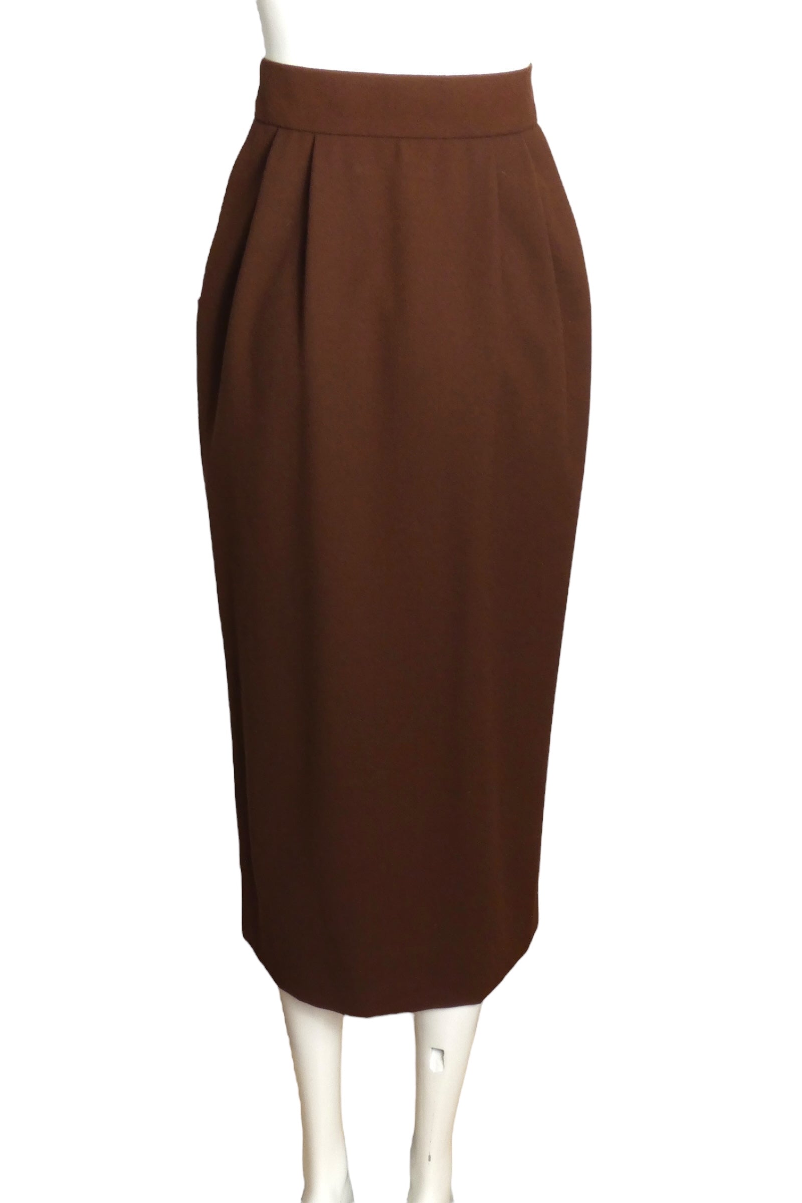 PIERRE CARDIN (HAUTE COUTURE)- 2000 Brown Wool Crepe Skirt, Size 4