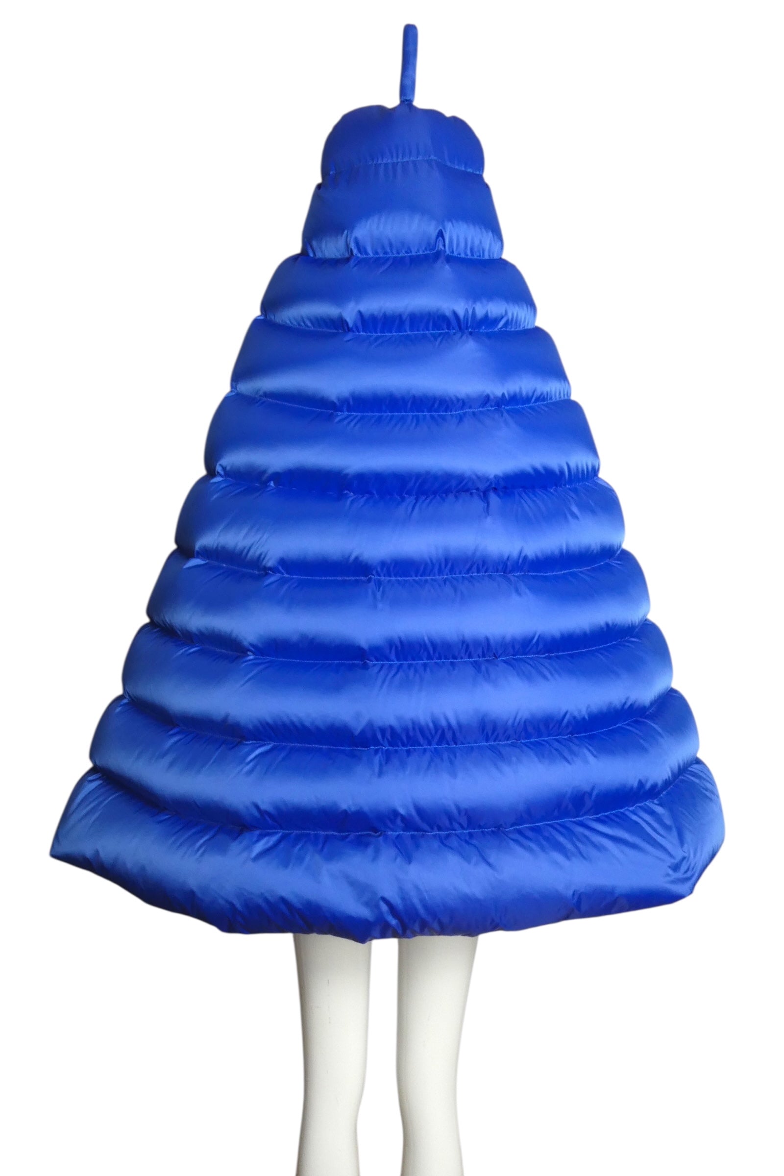 Description: Add a playful edge to your wardrobe with this 2009 Pierre Cardin haute couture blue puffer coat. Its unique triangular quilted design offers bold style while the front zipper and side hand slits provide easy wear and comfort. Finished with a standout beacon detail at the top, this coat blends functional warmth with a fun, fashion-forward look.