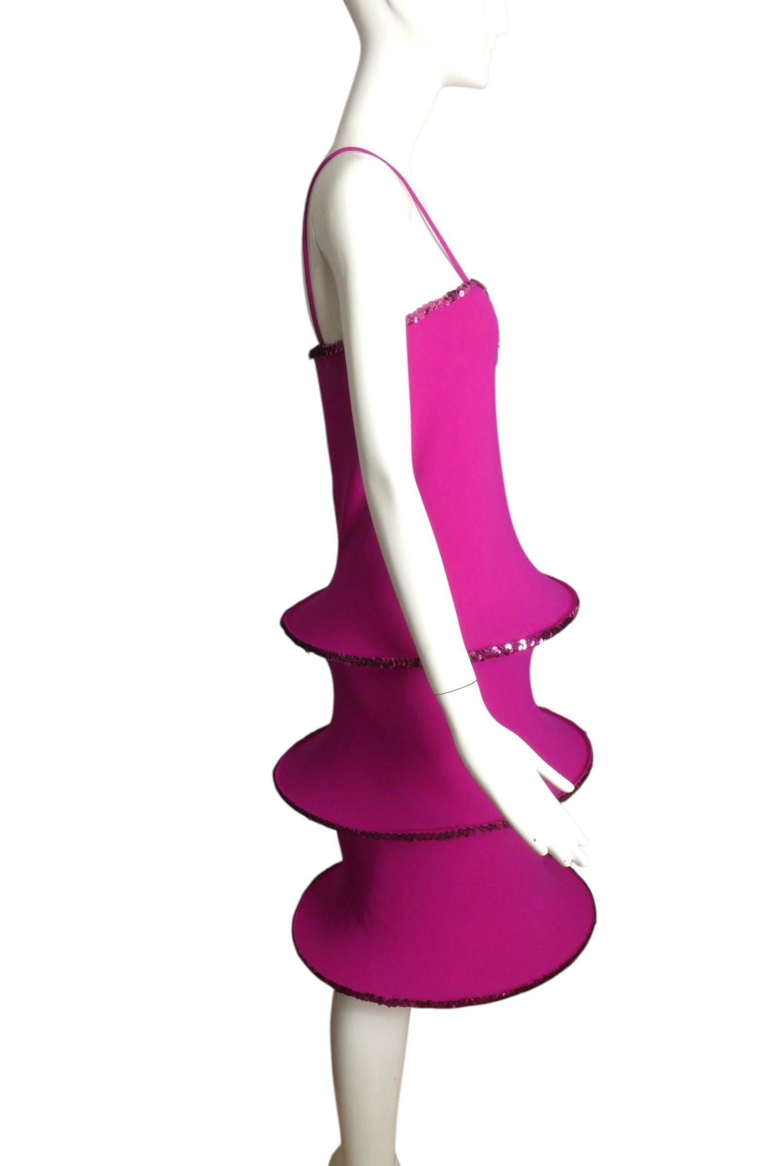 PIERRE CARDIN (HAUTE COUTURE)- 2009 Raspberry Sequin Knit Hoop Dress, Size 2