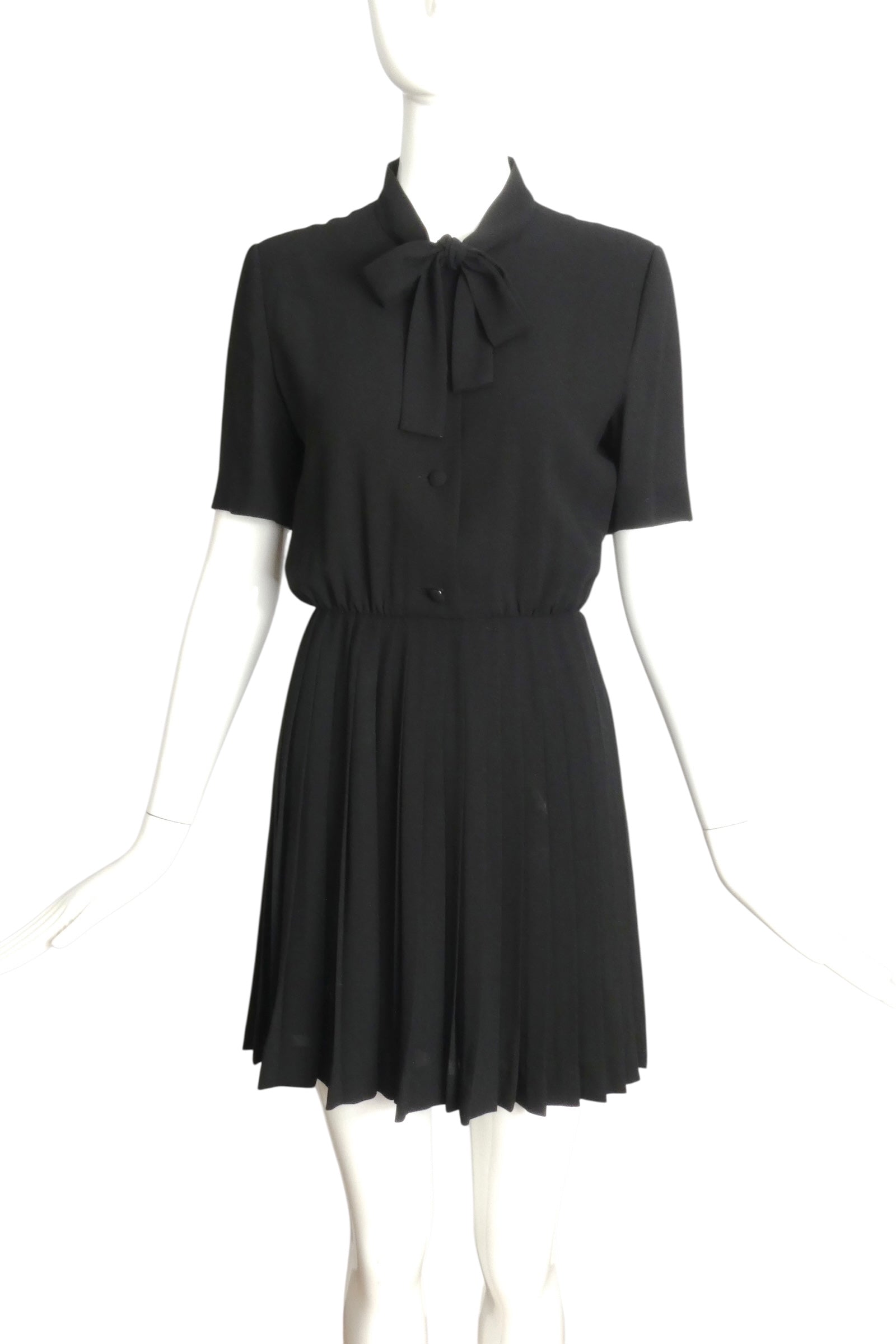 PIERRE CARDIN PARIS- 1970s Black Pleated Crepe Dress, Size 6