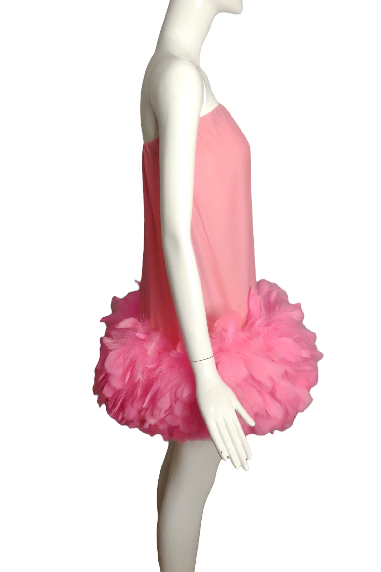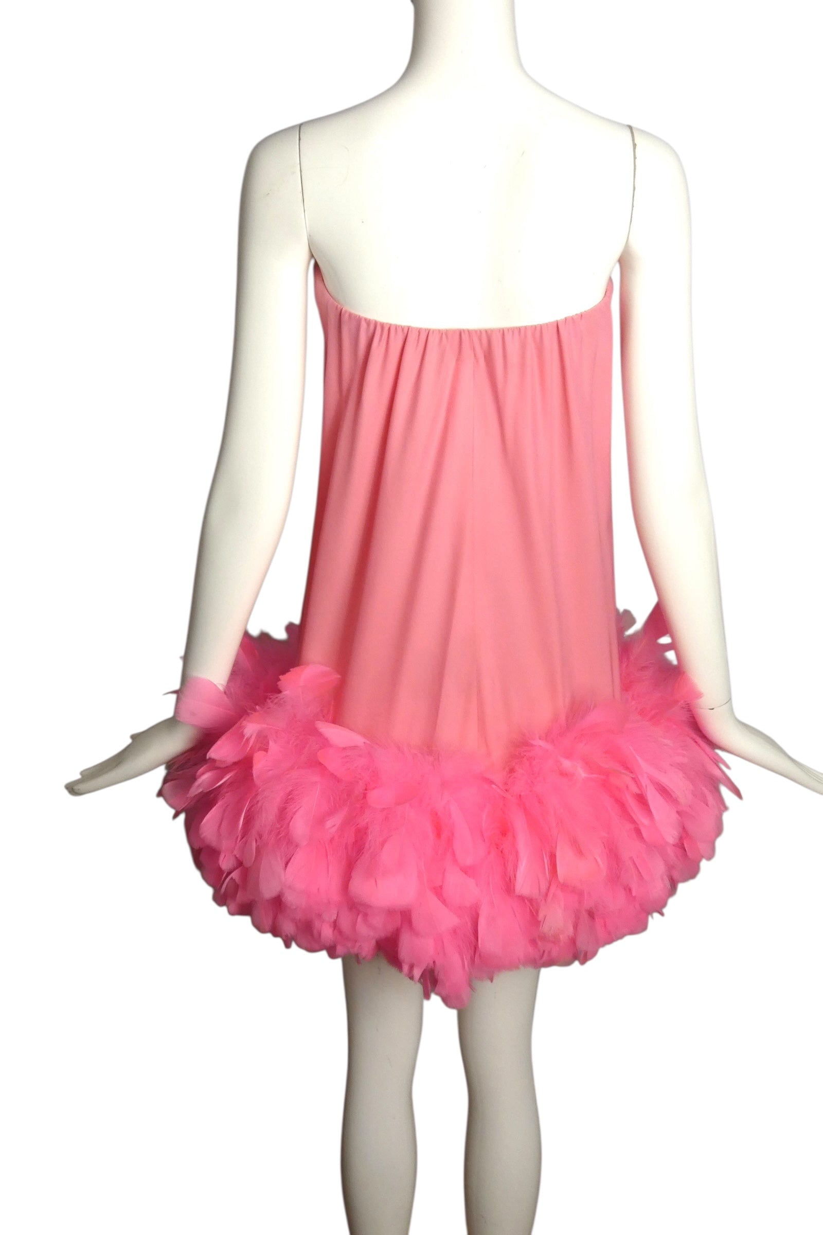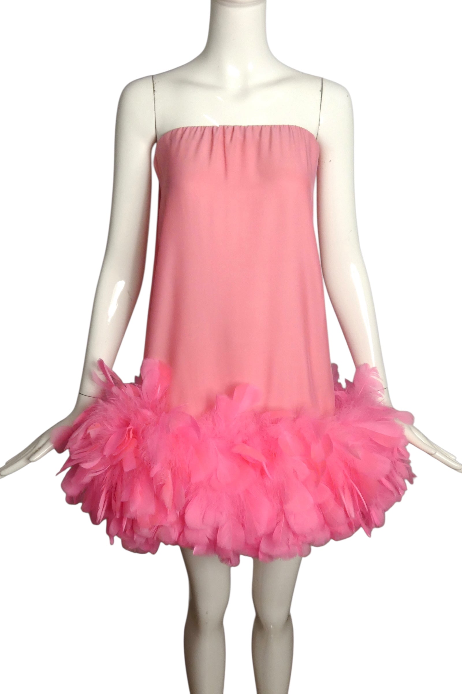 PIERRE CARDIN (HAUTE COUTURE)- Pink Silk & Feather Mini Dress, Size 6