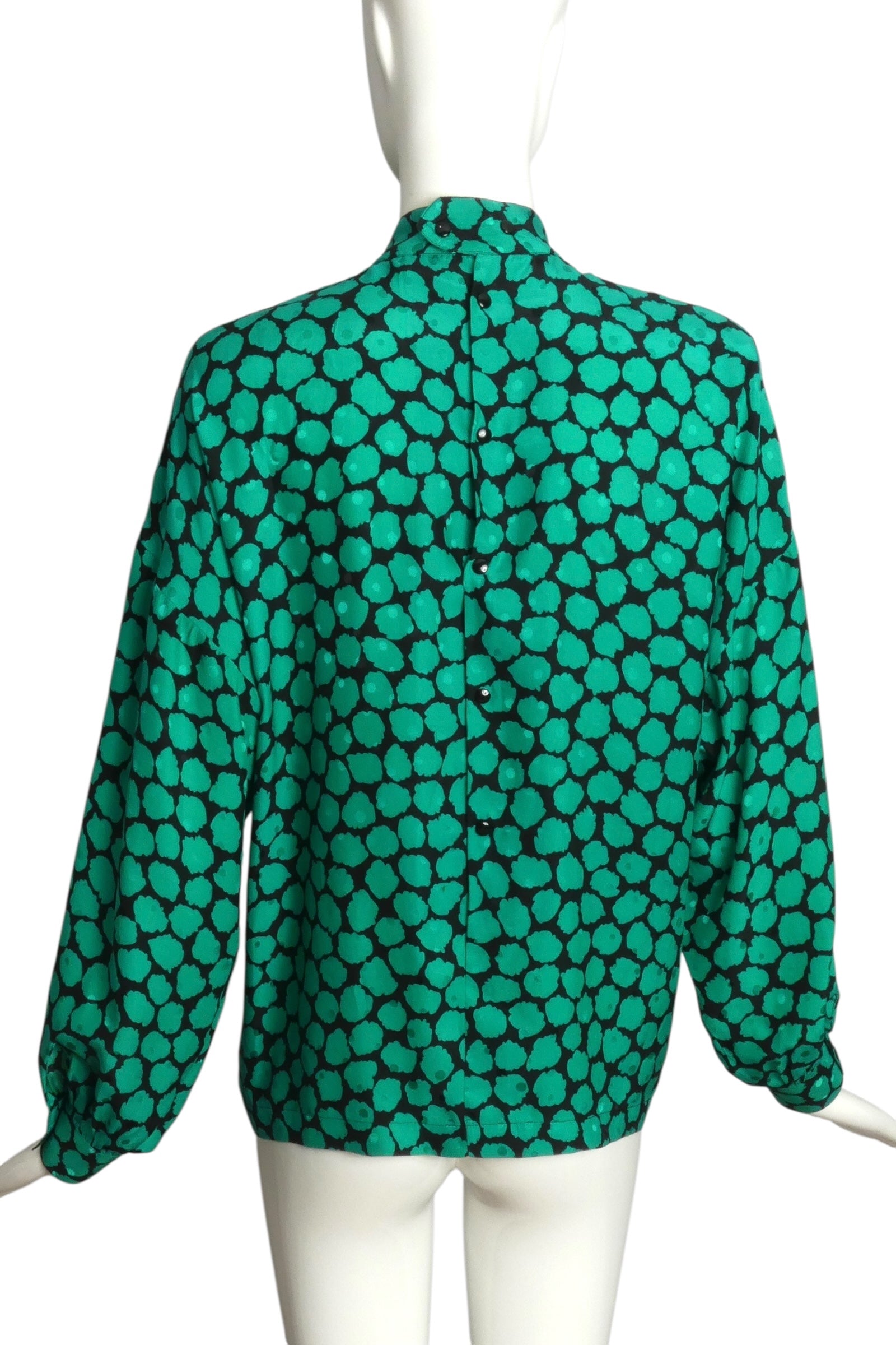 PIERRE CARDIN PRESTIGE- 1986 Printed Silk Blouse, Size 6