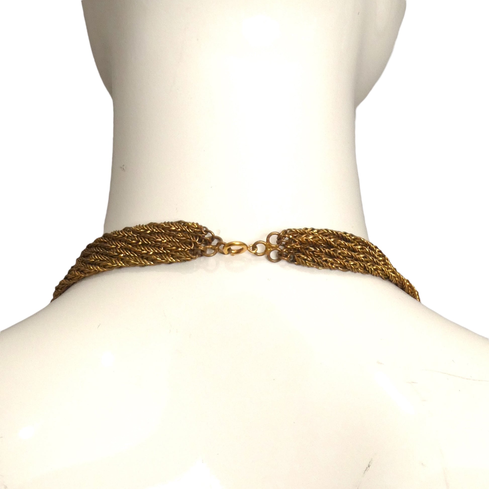 Description: Make a splash with this playful Roger Scemama necklace from around 1970! Its multi-chain design is decked out with large hammered and filigree brass medallions, each telling a charming fishing tale through intricate brass plates. The secure locking clasp keeps it comfy and ready for any adventure, whether casual or fancy. Add a vintage twist to your look with this eye-catching statement piece that’s full of character and charm!