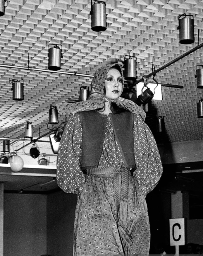 Description: This exceptional Yves Saint Laurent Rive Gauche blouse from the 1976 collection exemplifies the house's mastery of color and silhouette. Crafted in wool, the piece showcases a striking geometric diamond print in vibrant fuchsia, blue, purple, and yellow tones characteristic of YSL's bold aesthetic. The refined keyhole neckline features an attached tie detail, while voluminous bishop sleeves provide architectural elegance. A true collector's piece that captures the sophistication and innovation of Saint Laurent's iconic ready-to-wear line.