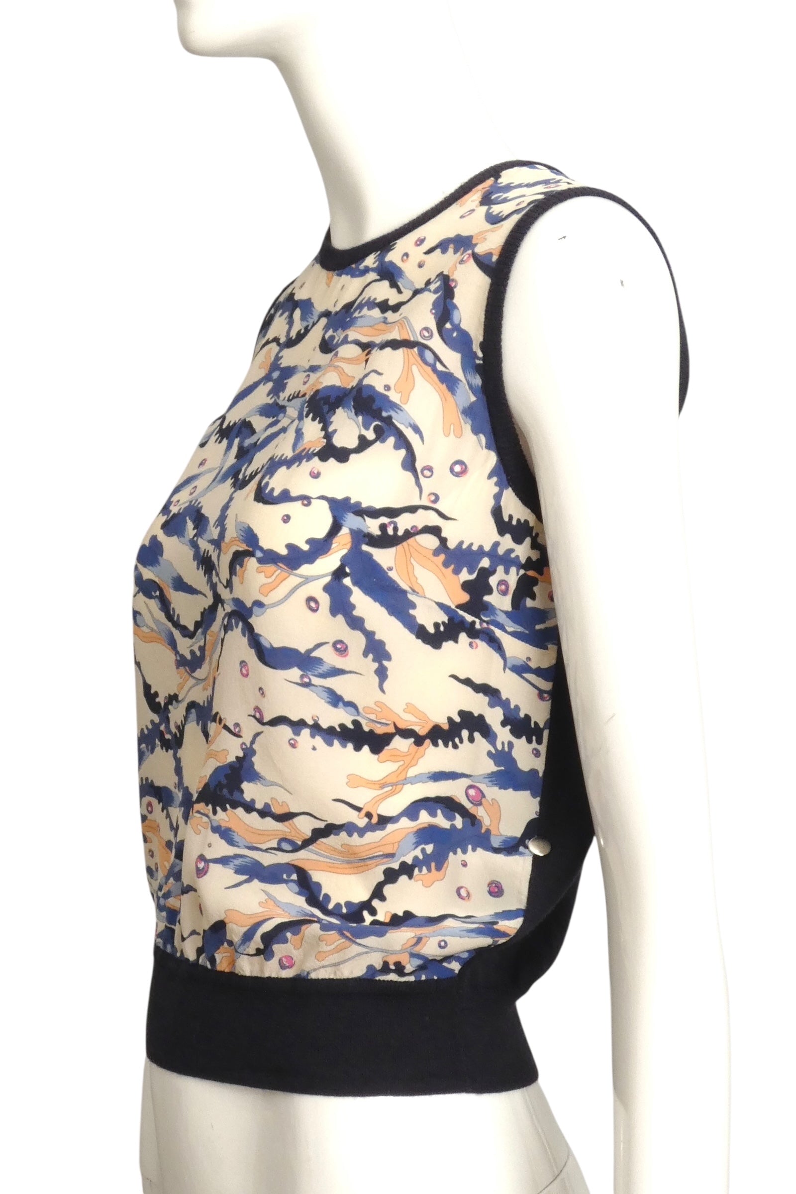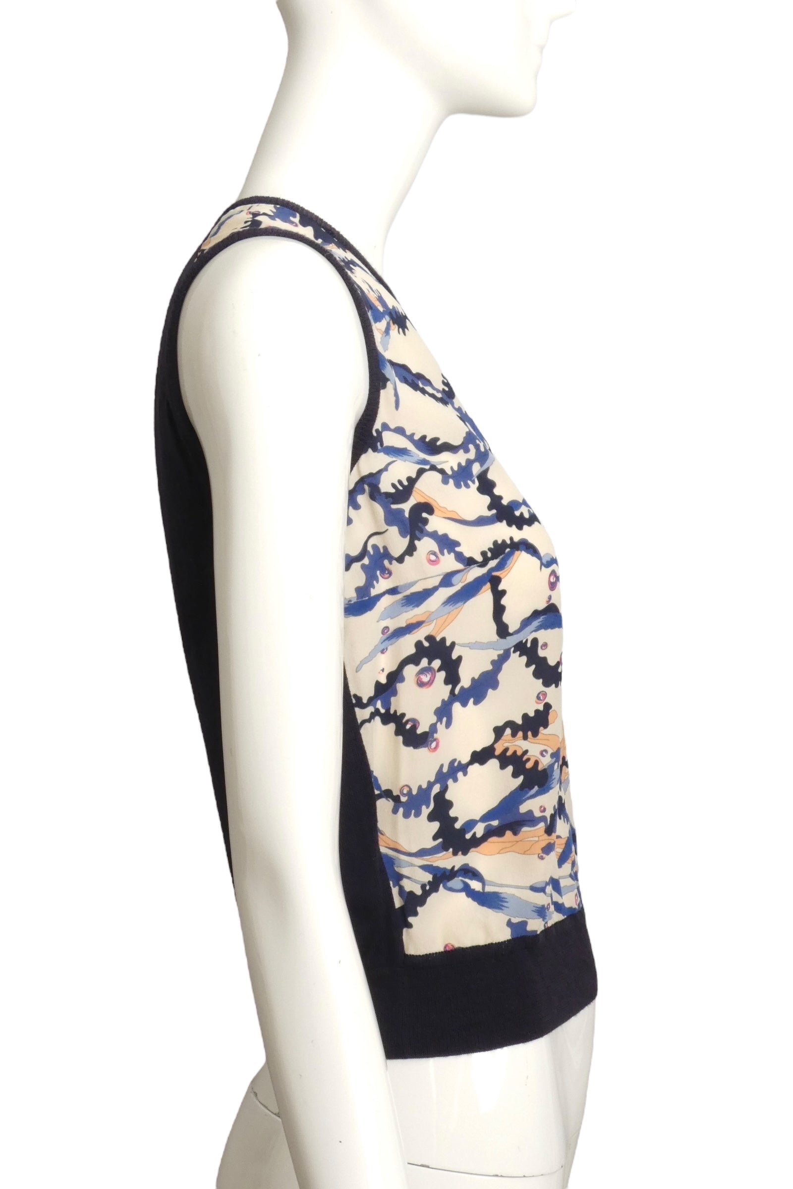 SALAVATORE FERRAGAMO- 1990s Print Silk & Knit Vest, Size XS