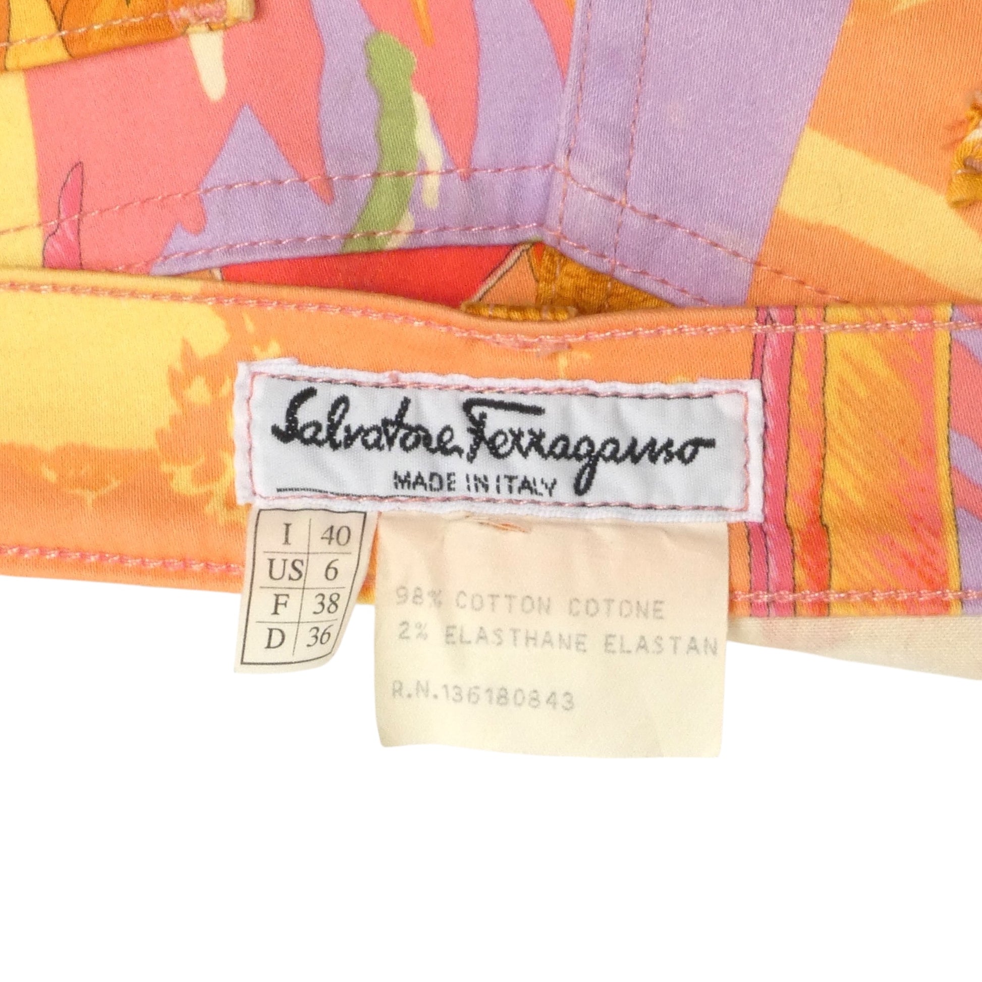 SALVATORE FERRAGAMO- 1990s Floral Print Twill Pants, Size 6