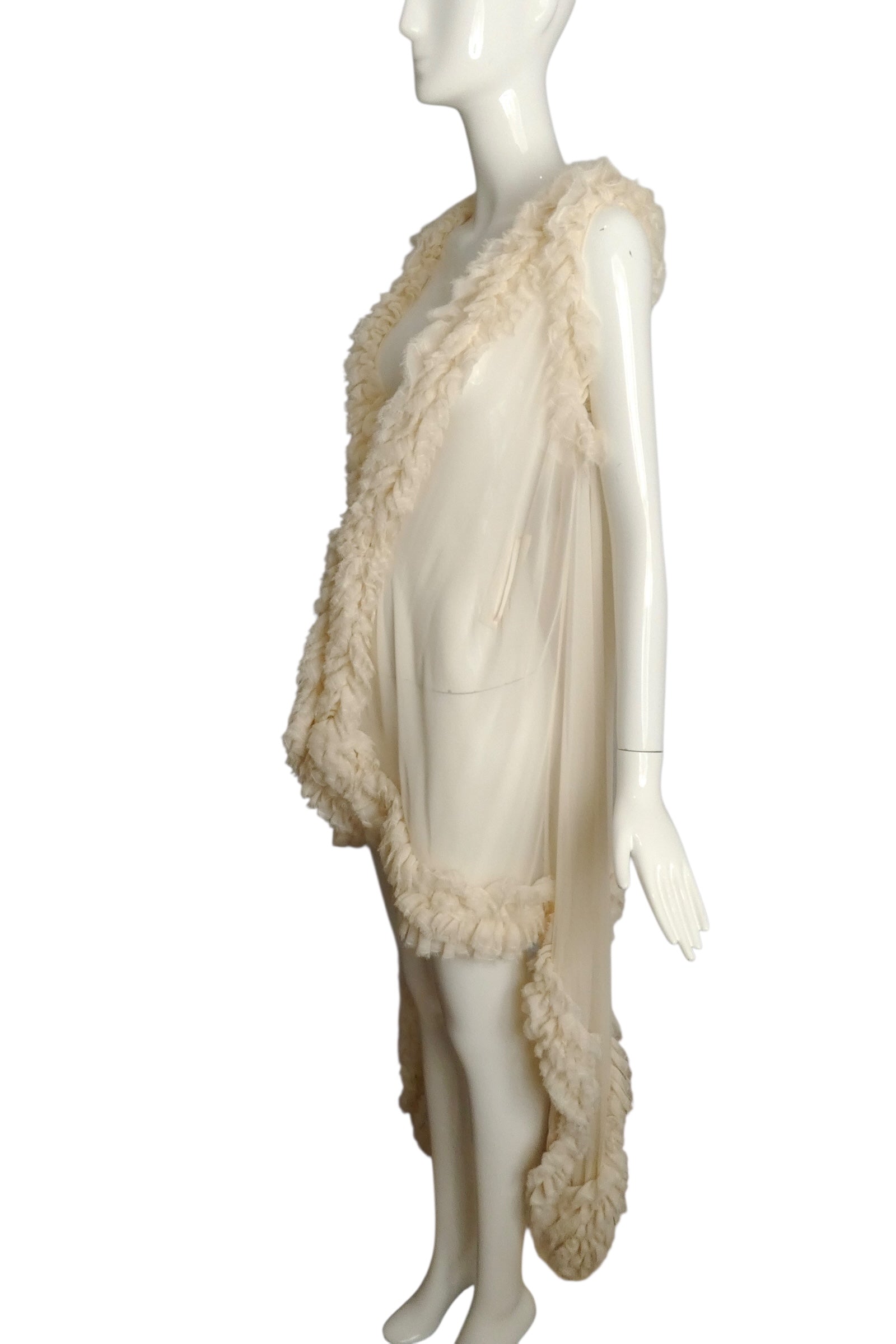 THOMAS WYLDE- NWT Ivory Fringed Ruffle Chiffon Vest, Size Small