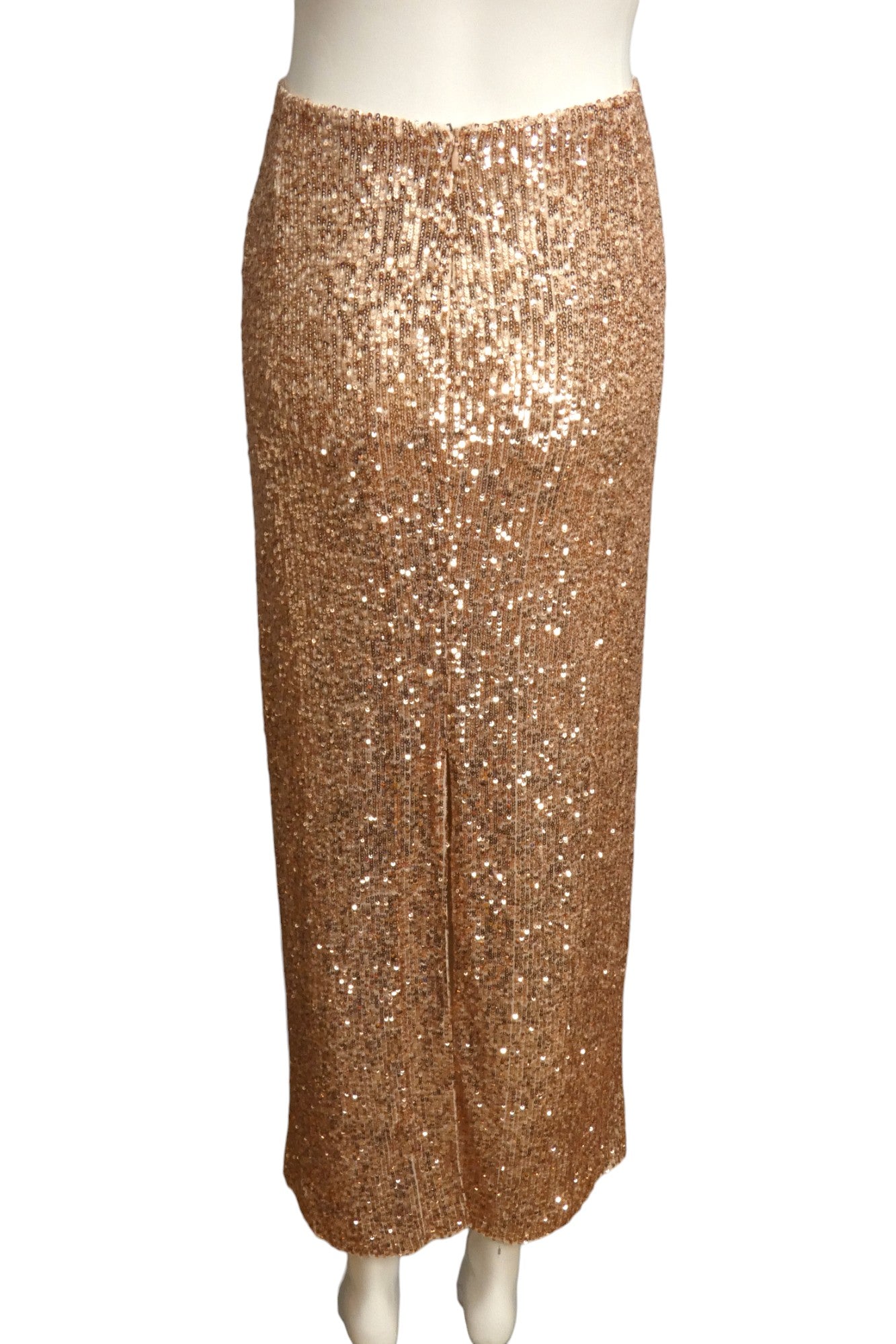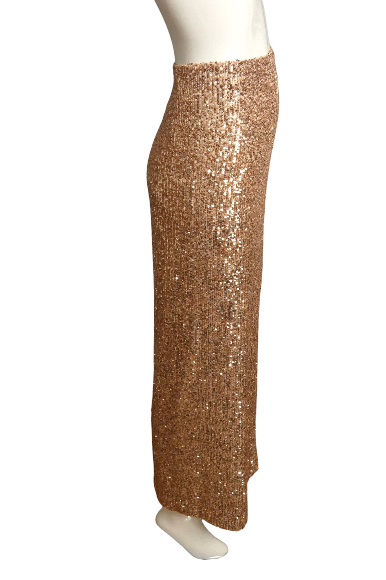 Description: Glow with glamour in this stunning blush sequin evening skirt by Tom Ford. Designed without a waistband for a sleek look, it features a flirty slit up the back that adds just the right amount of sass. Perfect for making a dazzling entrance at any event!