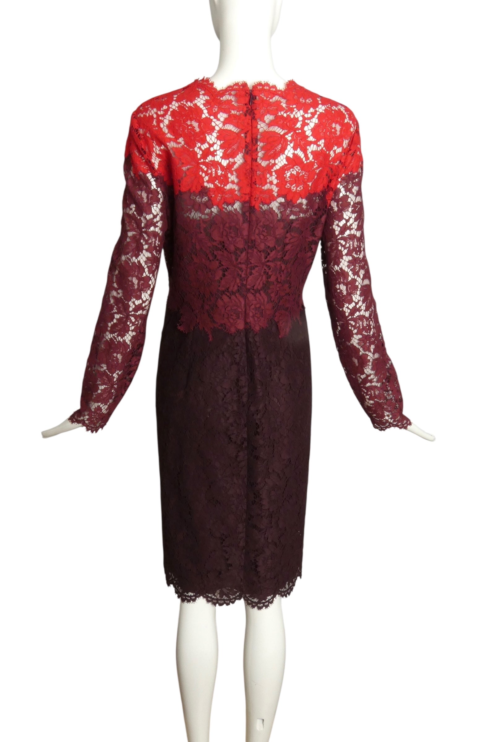 Description: Embrace playful elegance in this stunning sheath dress featuring a unique ombre effect with three vibrant lace colors layered beautifully. The long sleeves and dart-fitted bust create a flattering silhouette, while the attached lining ensures comfort and coverage. Perfect for cocktail parties where style and fun meet.