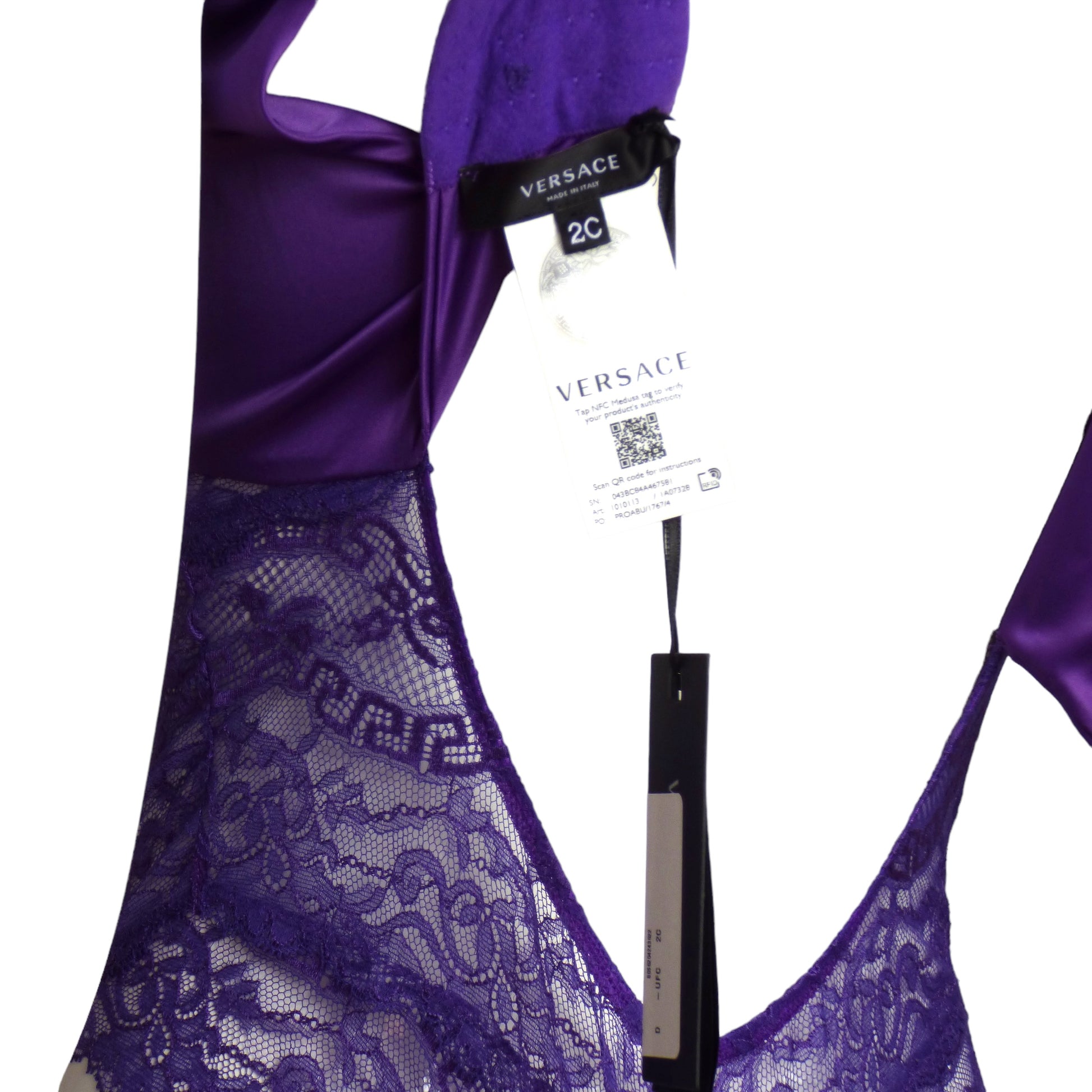 VERSACE- NWT 2023 Purple Satin & Lace Bodysuit, Size 2C
