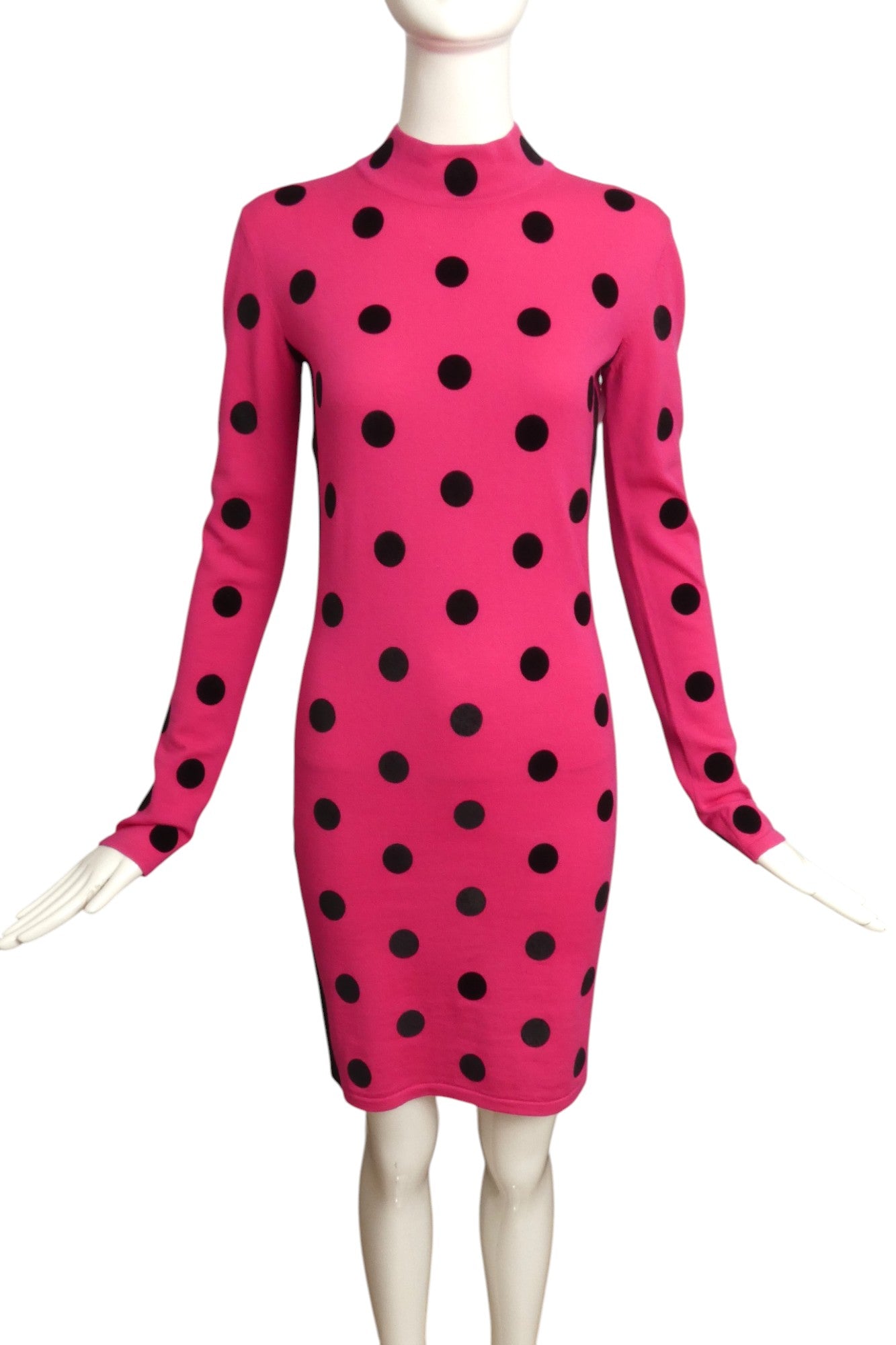 Description: Embrace the season in style with this Versace Spring 2024 wool knit dress, featuring charming pink fabric dotted with plush velvet polka dots. This playful yet chic piece adds a fun twist to your wardrobe, perfect for casual days or standout events. With its lively texture and vibrant hue, it’s sure to catch eyes and brighten your look. Celebrate the joy of polka dots and step out confidently this season!