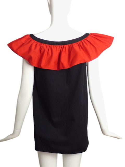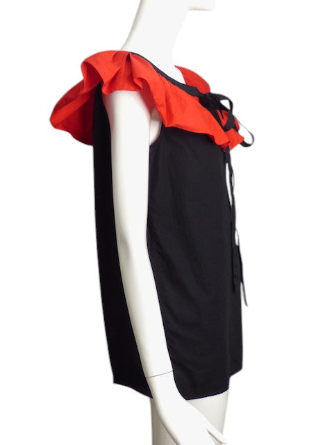 Yves Saint Laurent- 1983 Black & Red Cotton Ruffle Blouse, Size 4