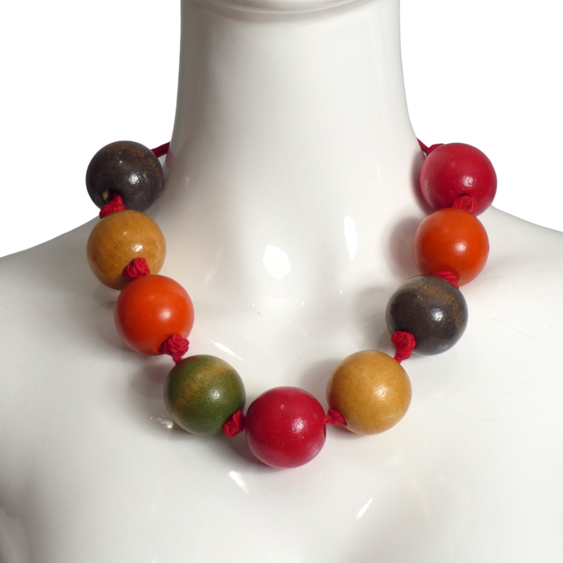 YVES SAINT LAURENT-1977 Colorful Wood Bead Necklace