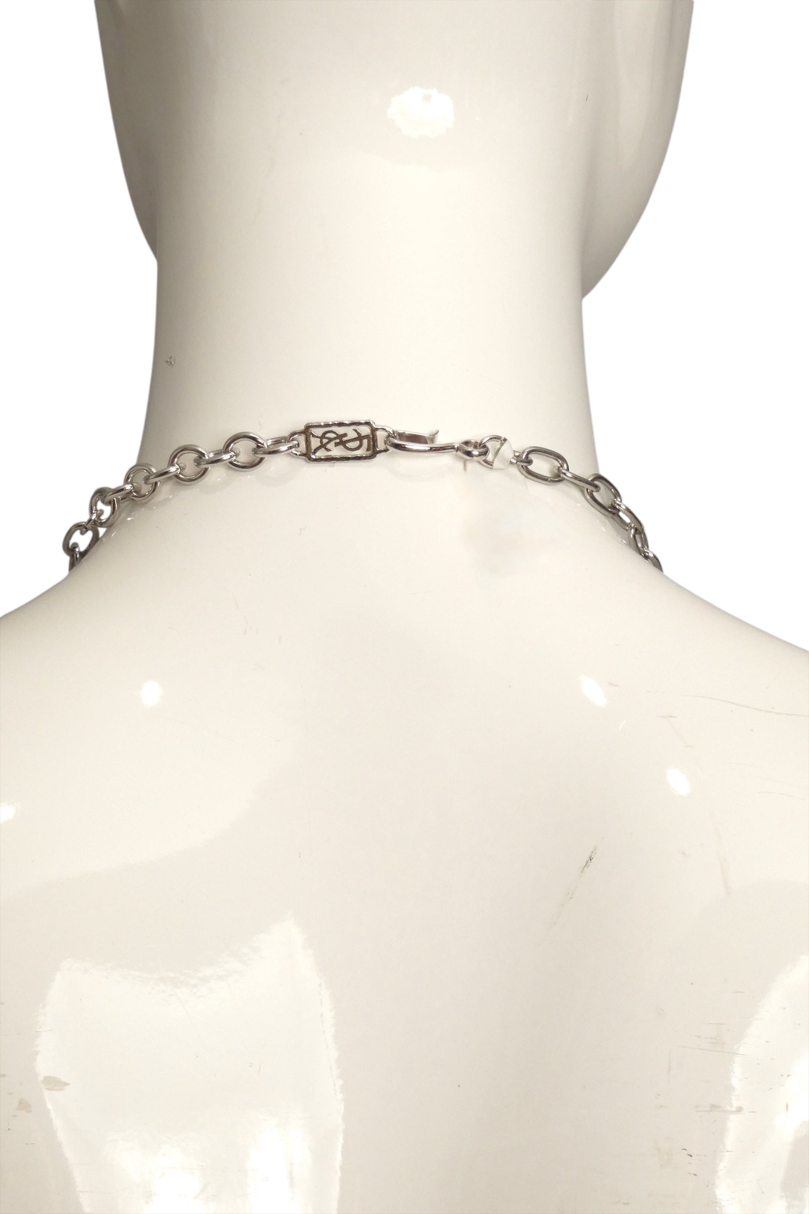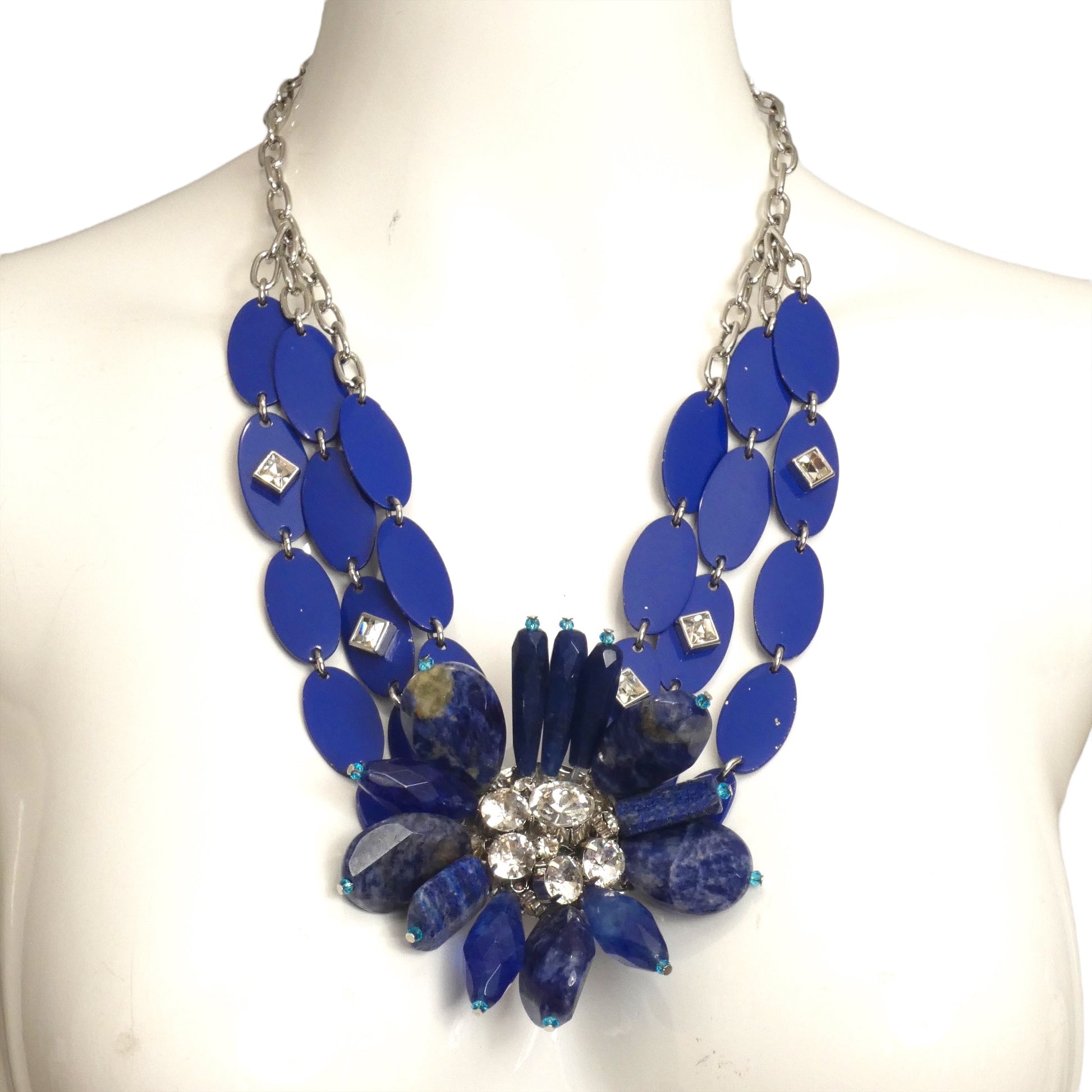 Description: Boost your accessory collection with this dazzling 1980s Yves Saint Laurent necklace, a standout piece that radiates vintage charm. It features a silver-tone chain decorated with cobalt blue metal ovals, some sparkling with rhinestones for extra sparkle. The highlight is a stunning lapis bead flower, encircled by clear rhinestones that add a burst of brilliance to any evening outfit. Finished with a simple hook closure, this necklace is both stylish and easy to wear. Grab it and get ready to shine at your next special occasion!