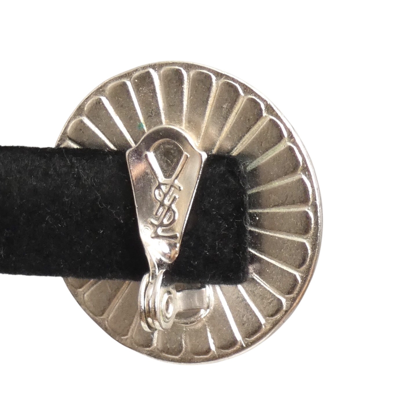 Description: Step up your accessory game with these charming Yves Saint Laurent button earrings from the 1980s! Showcasing smooth wooden balls nestled in sleek silver-tone metal, these clip-back earrings mix vintage vibes with a modern twist. Light and comfy, they’re perfect for daily wear or dressing up for special moments. Add a playful pop of timeless style to your jewelry box with these standout classics!